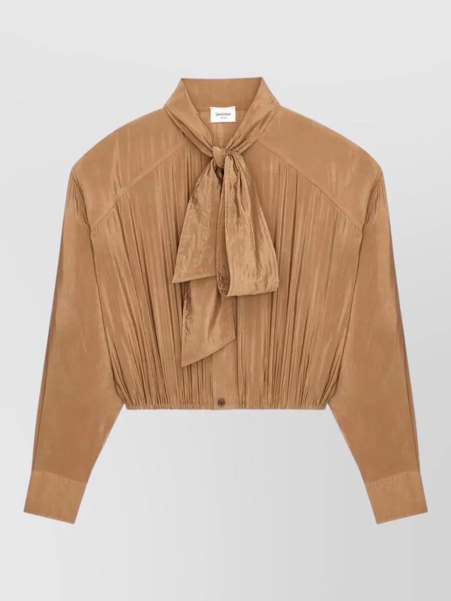 Saint Laurent silk ruffled v-neck long-sleeve blouse