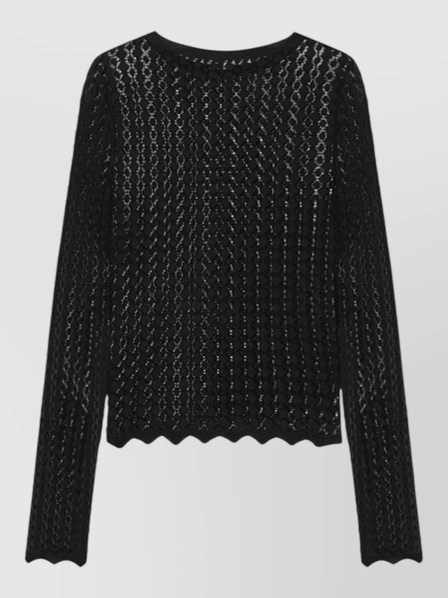 Saint Laurent viscose top pointelle knit scalloped hem