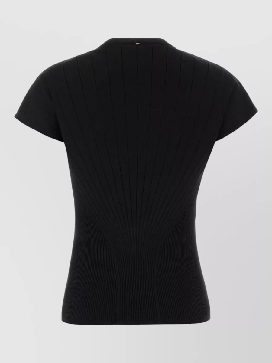 Sportmax ribbed texture sheer sleeves gold button detail