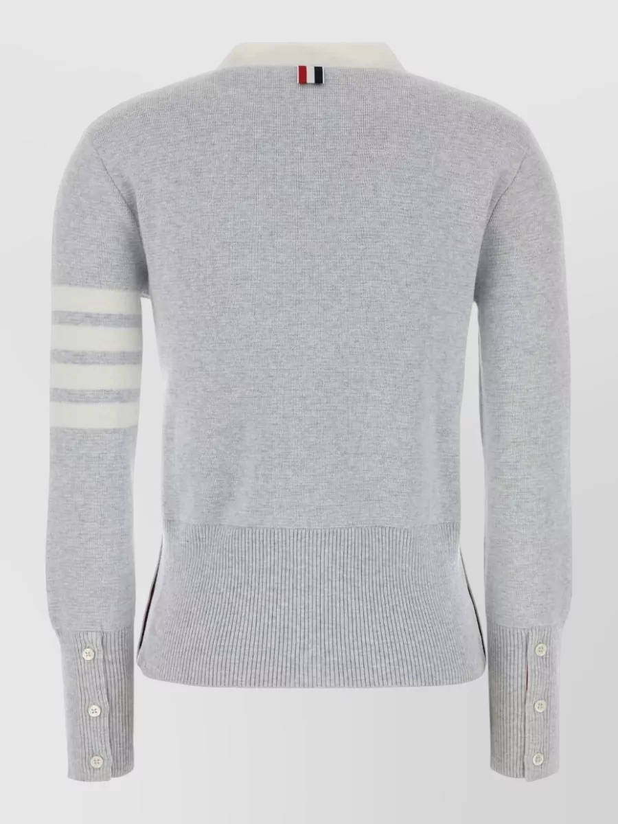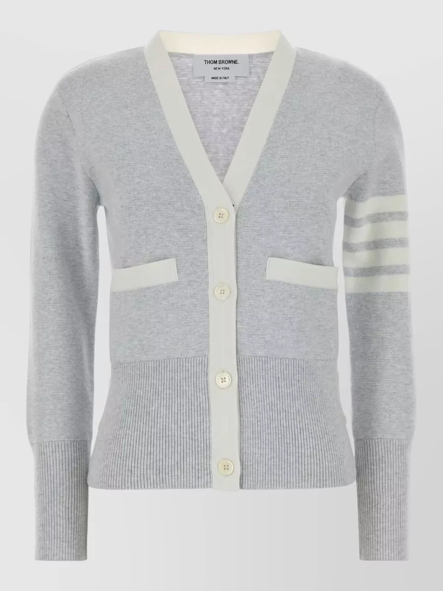 Thom Browne v neck cotton cardigan stripe detail