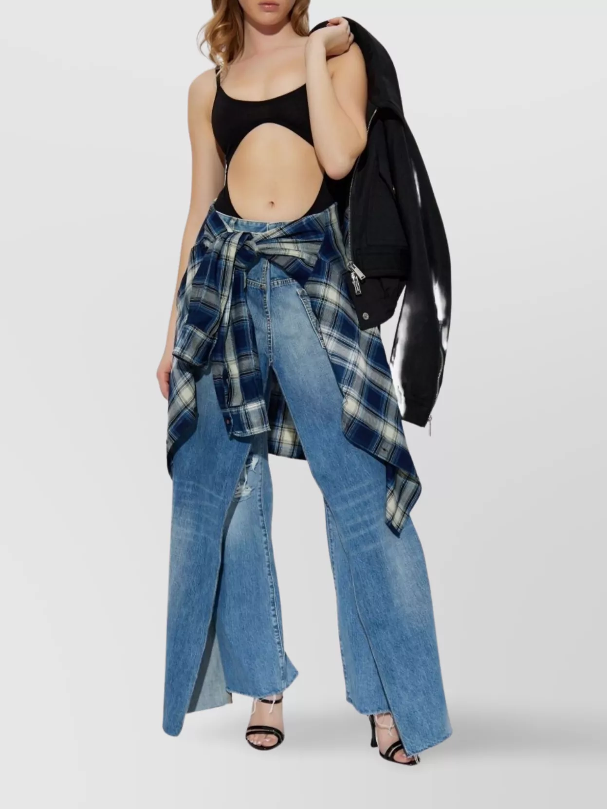 flare jean with belt loops and rivets