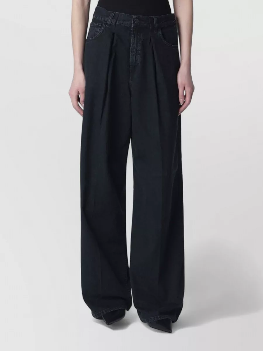 pleated wide leg denim trousers belt loops