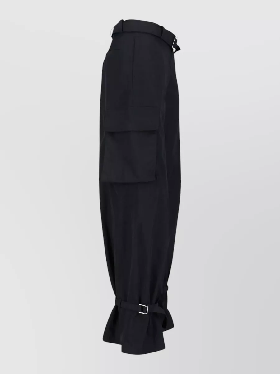 wide leg denim trousers with strap and pockets