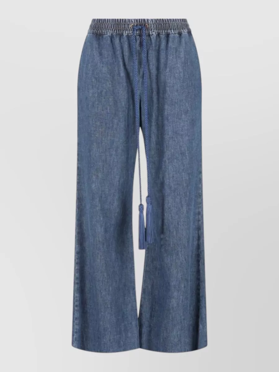 Valentino Garavani denim trousers belt loops distressed floral panels