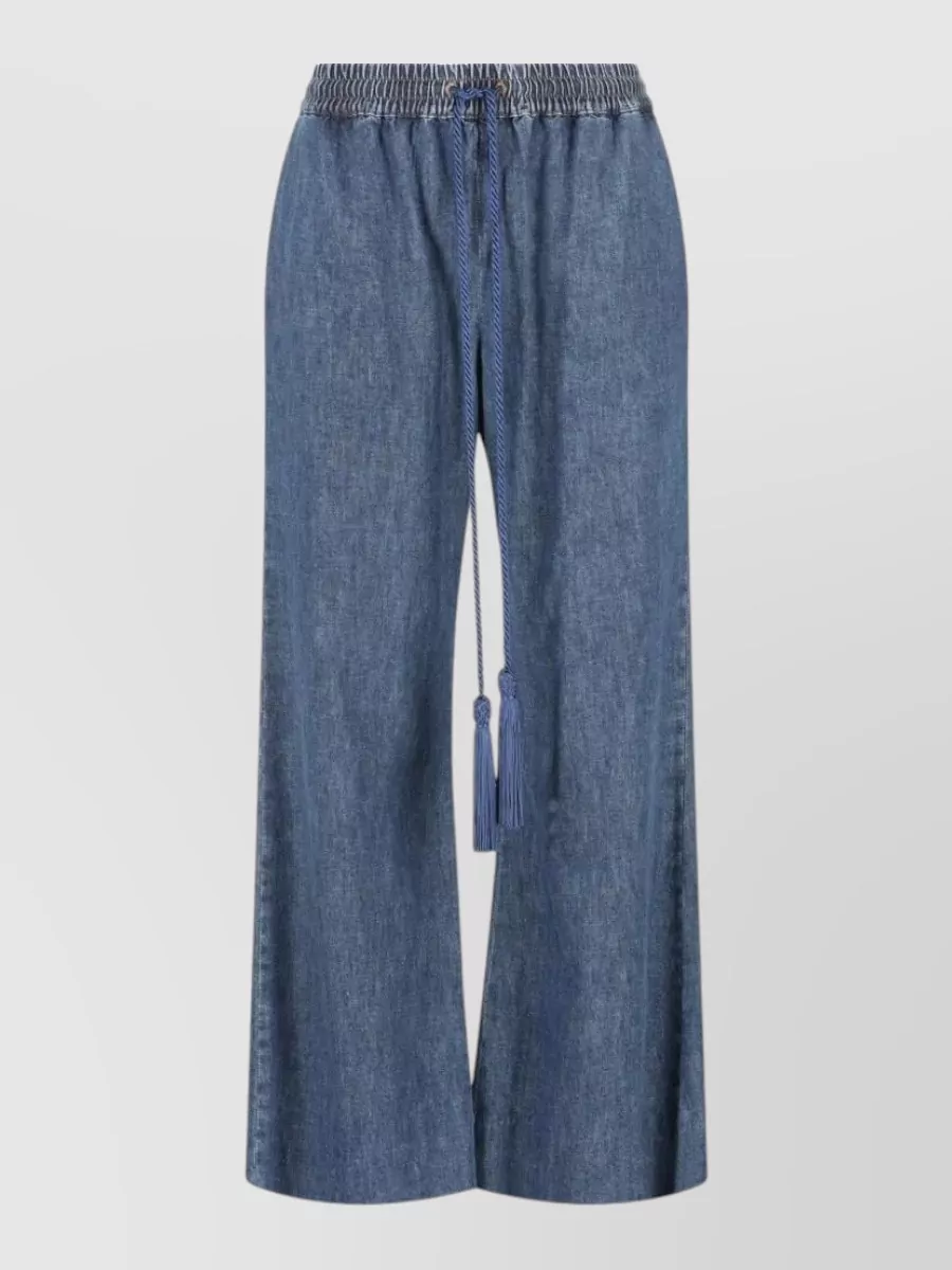 Valentino Garavani denim floral print pleated straight-leg jeans