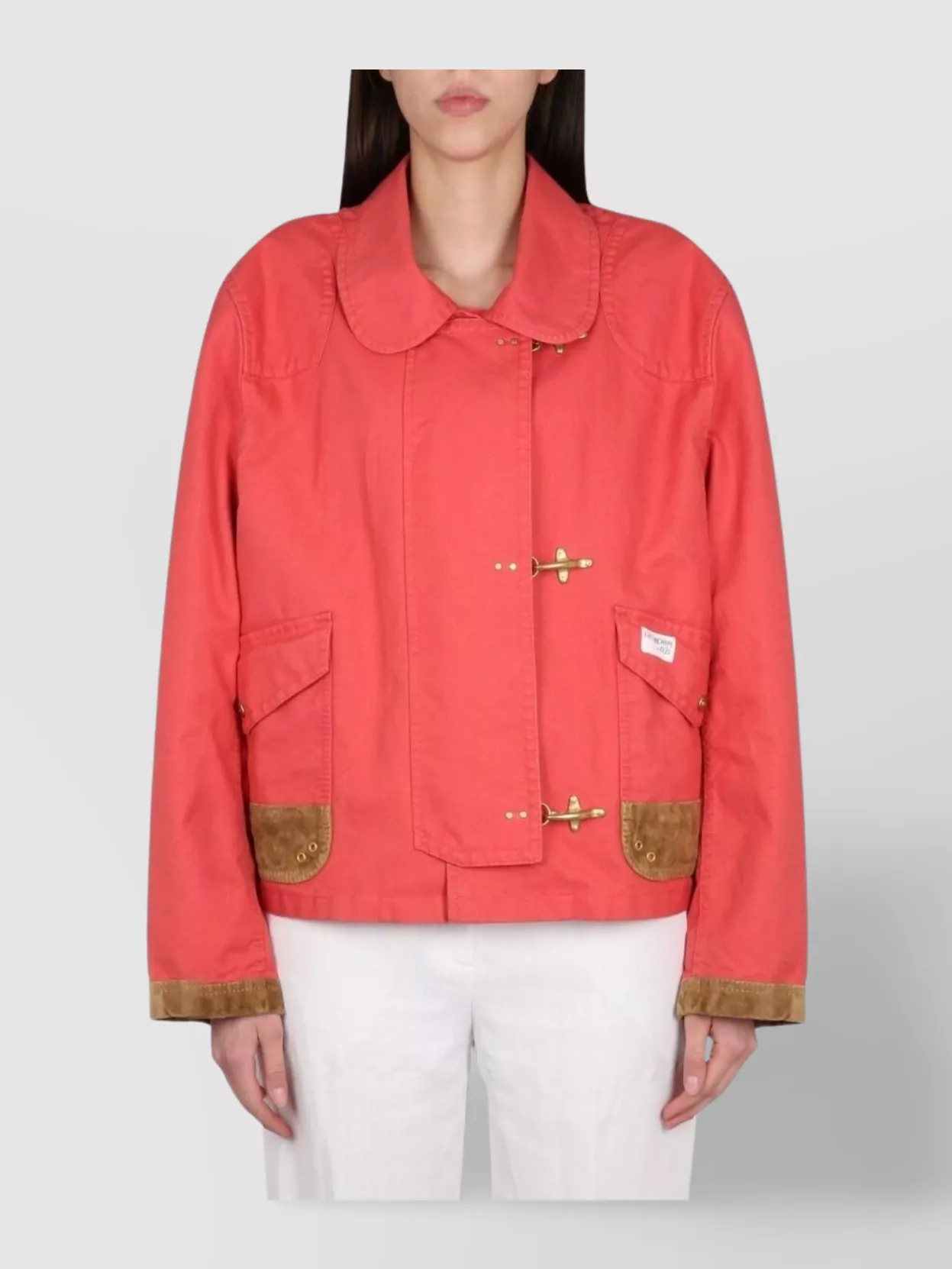 collared jacket with front pockets and contrast cuffs