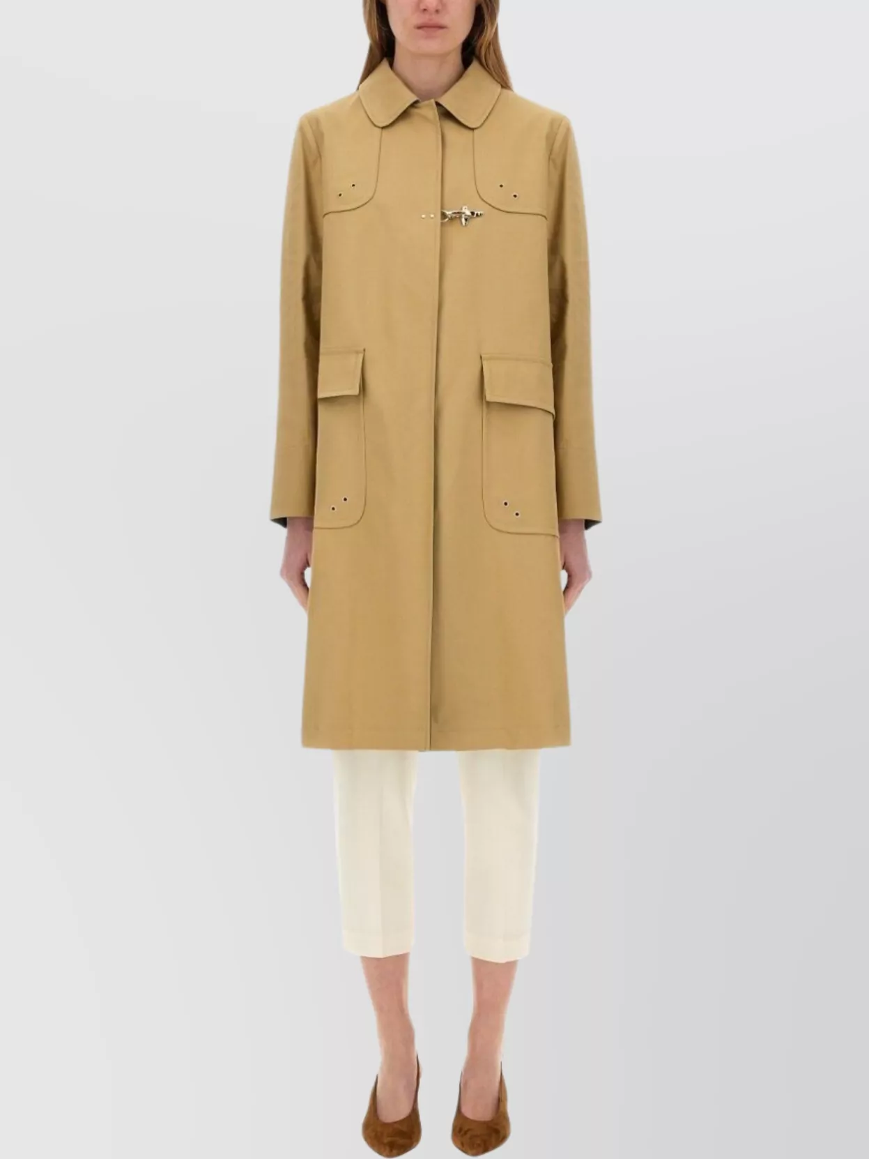 Fay double-breasted poplin coat with pockets