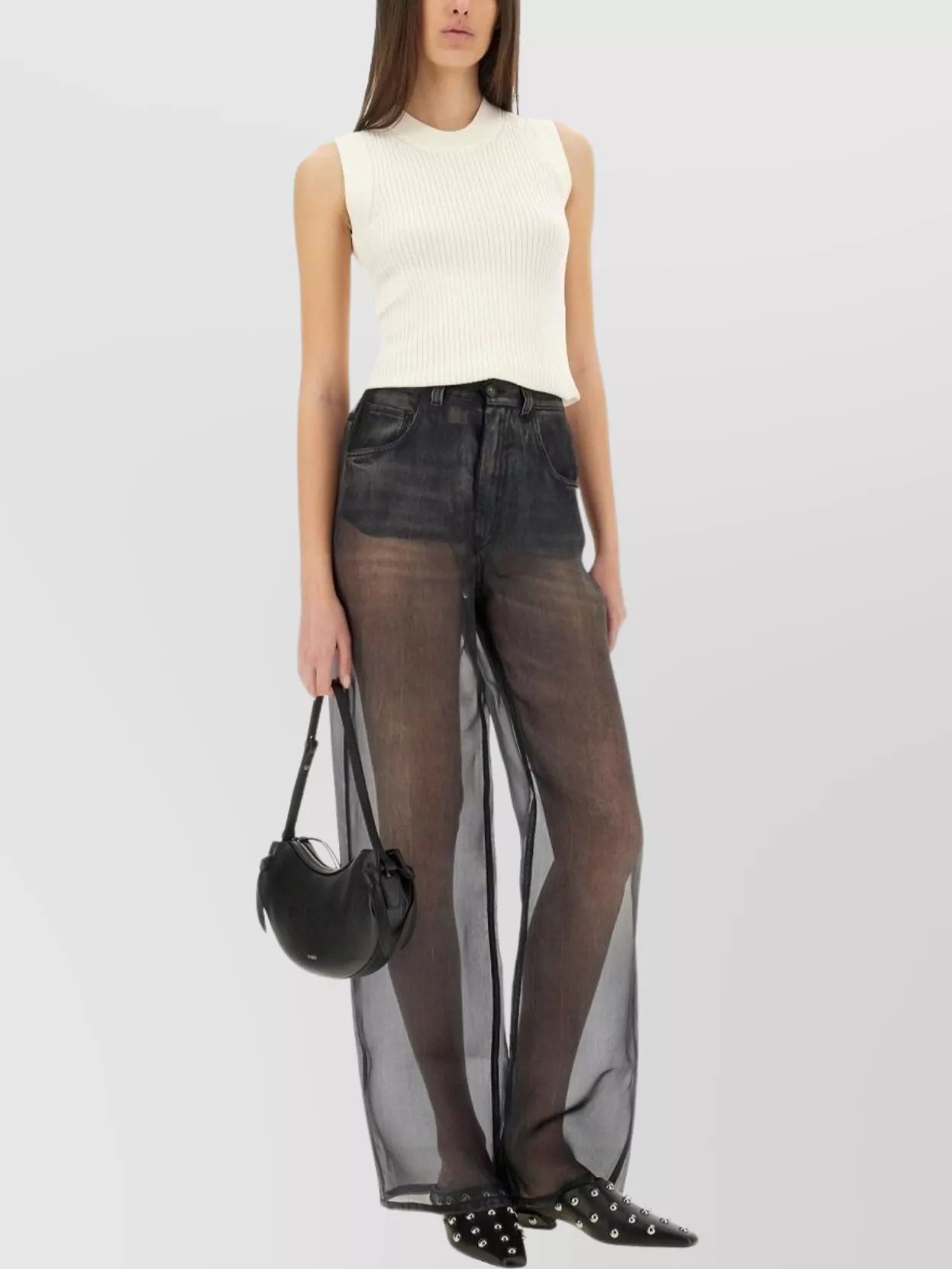 wide leg denim trousers