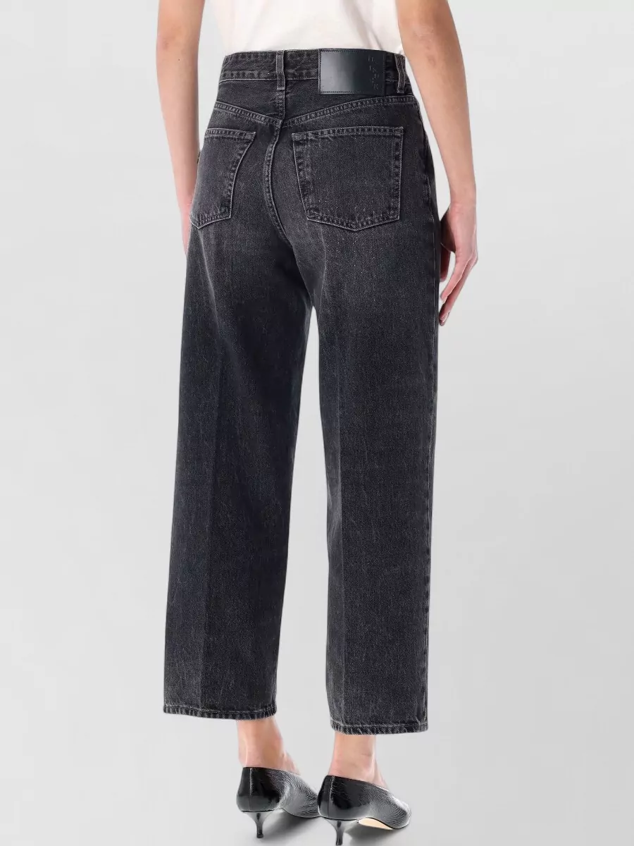 high-waisted straight leg denim trousers