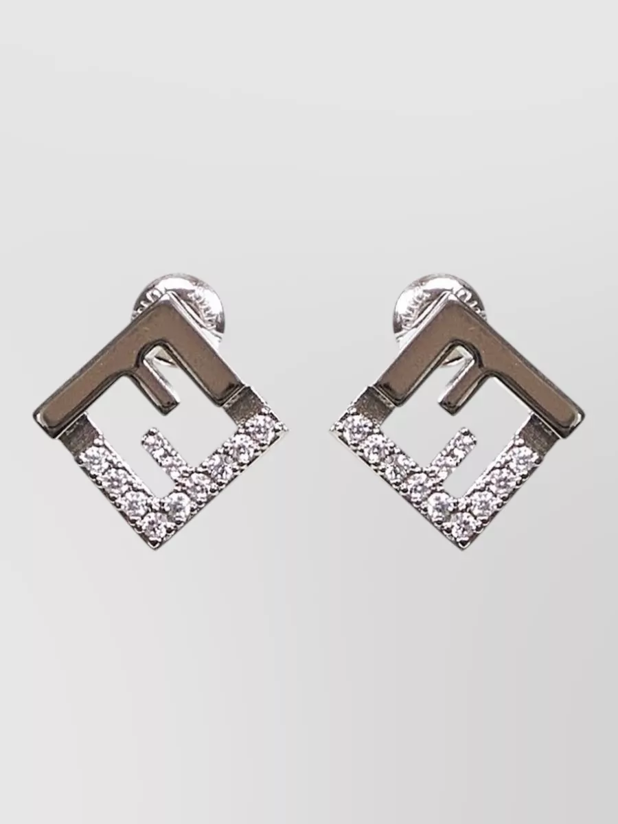 Fendi geometric stone detail silver tone stud earrings