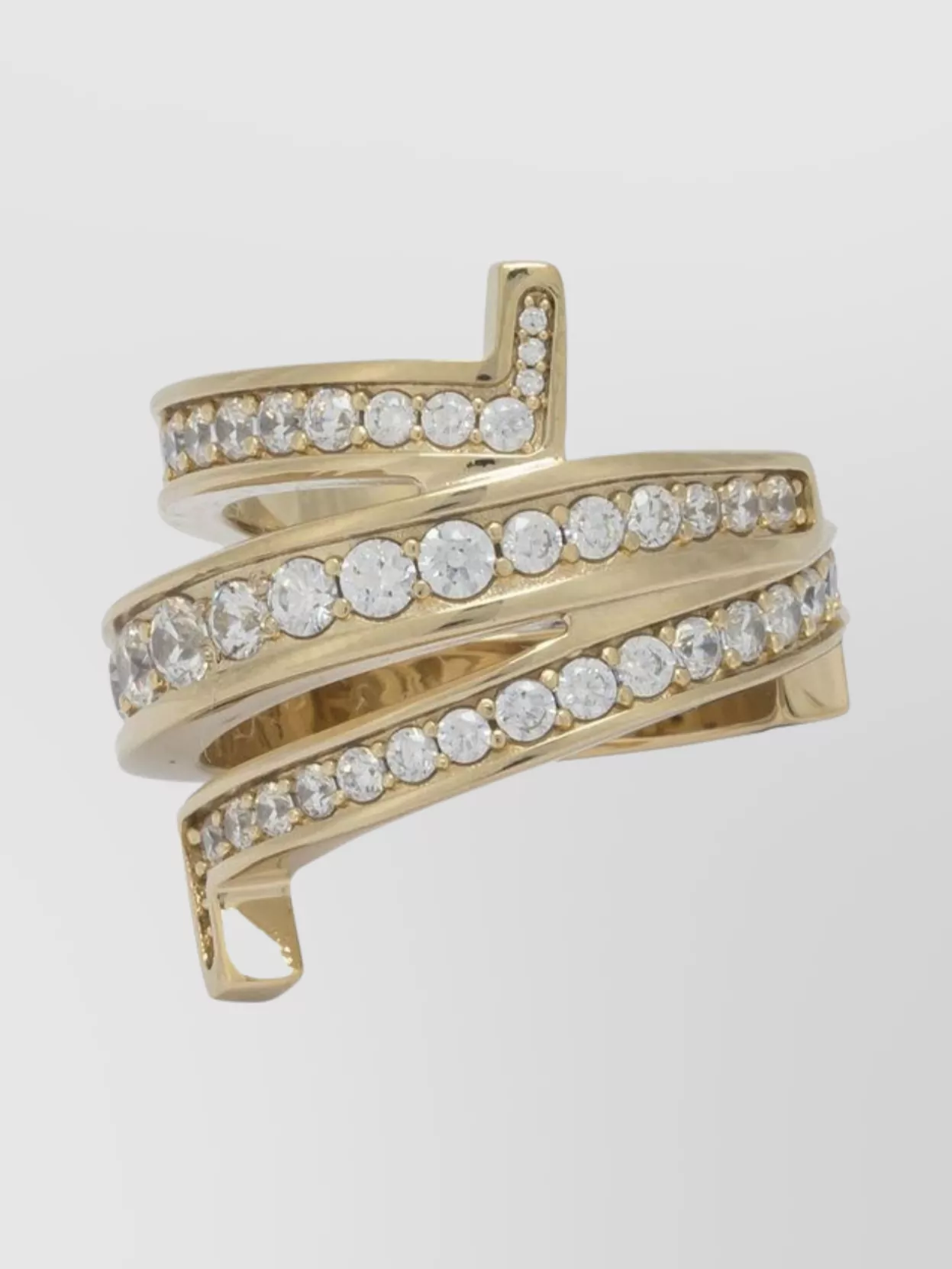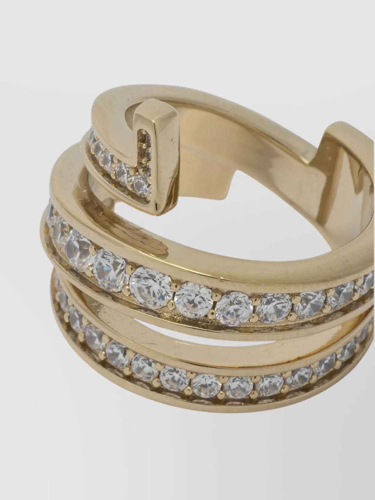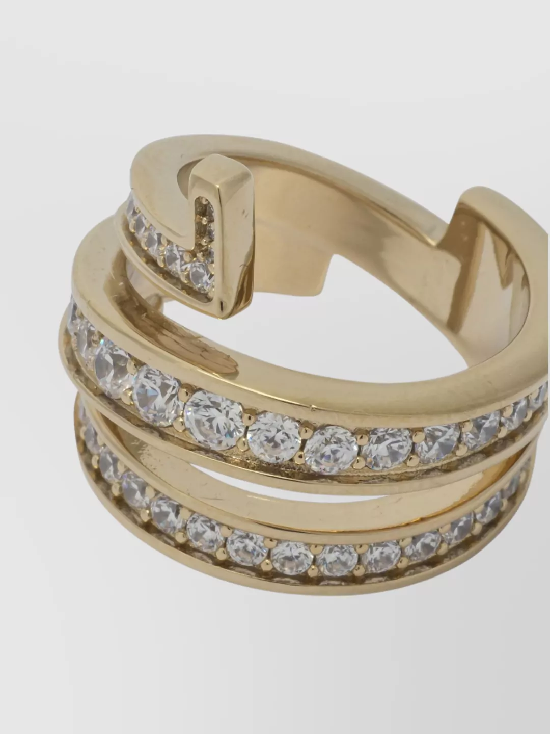 brass and crystal geometric open band ring