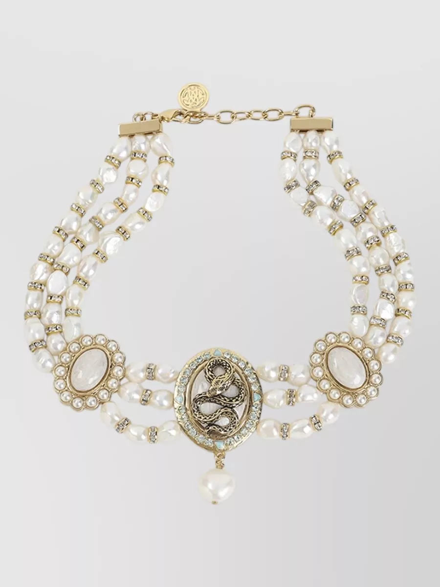 Roberto Cavalli tiger crystal open cuff textured bracelet