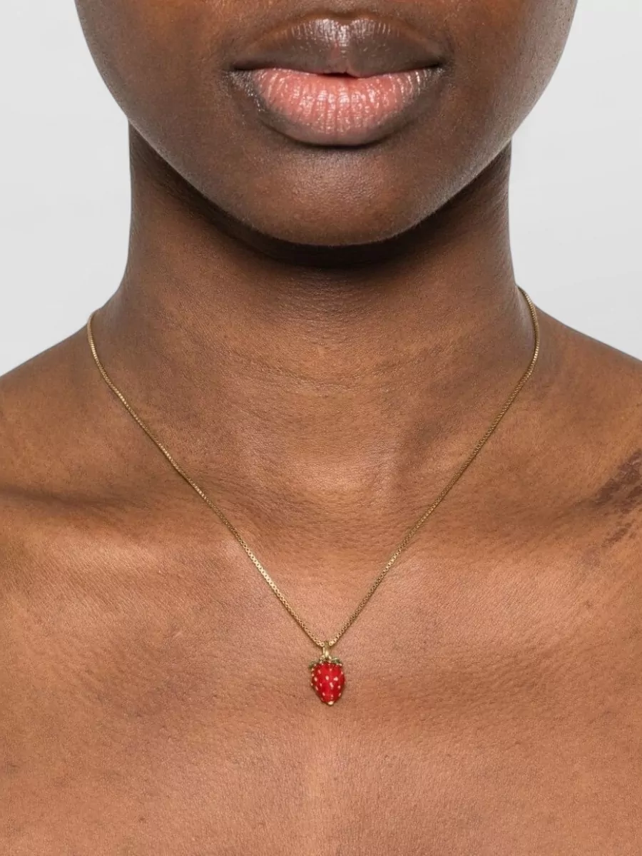 Saint Laurent necklace gold tone chain strawberry pendant