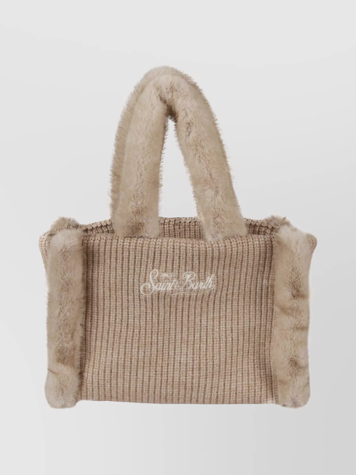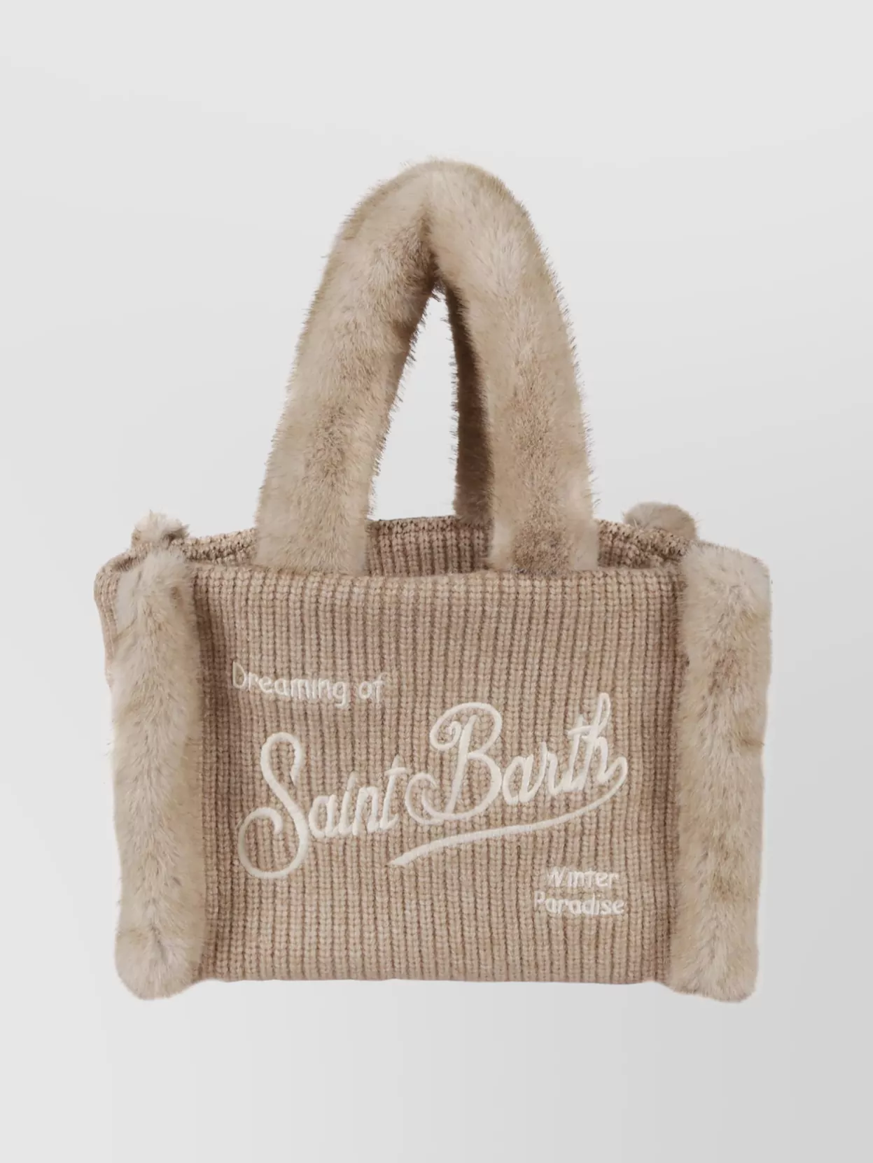 Mc2 Saint Barth cozy knit tote bag with fur trim