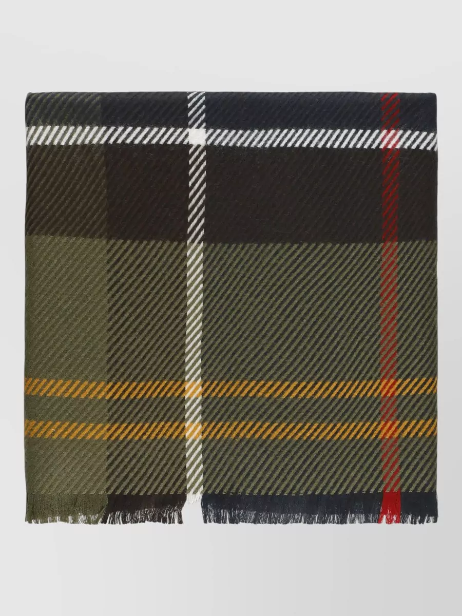 Barbour tartan pattern scarf contrasting design fringed hem