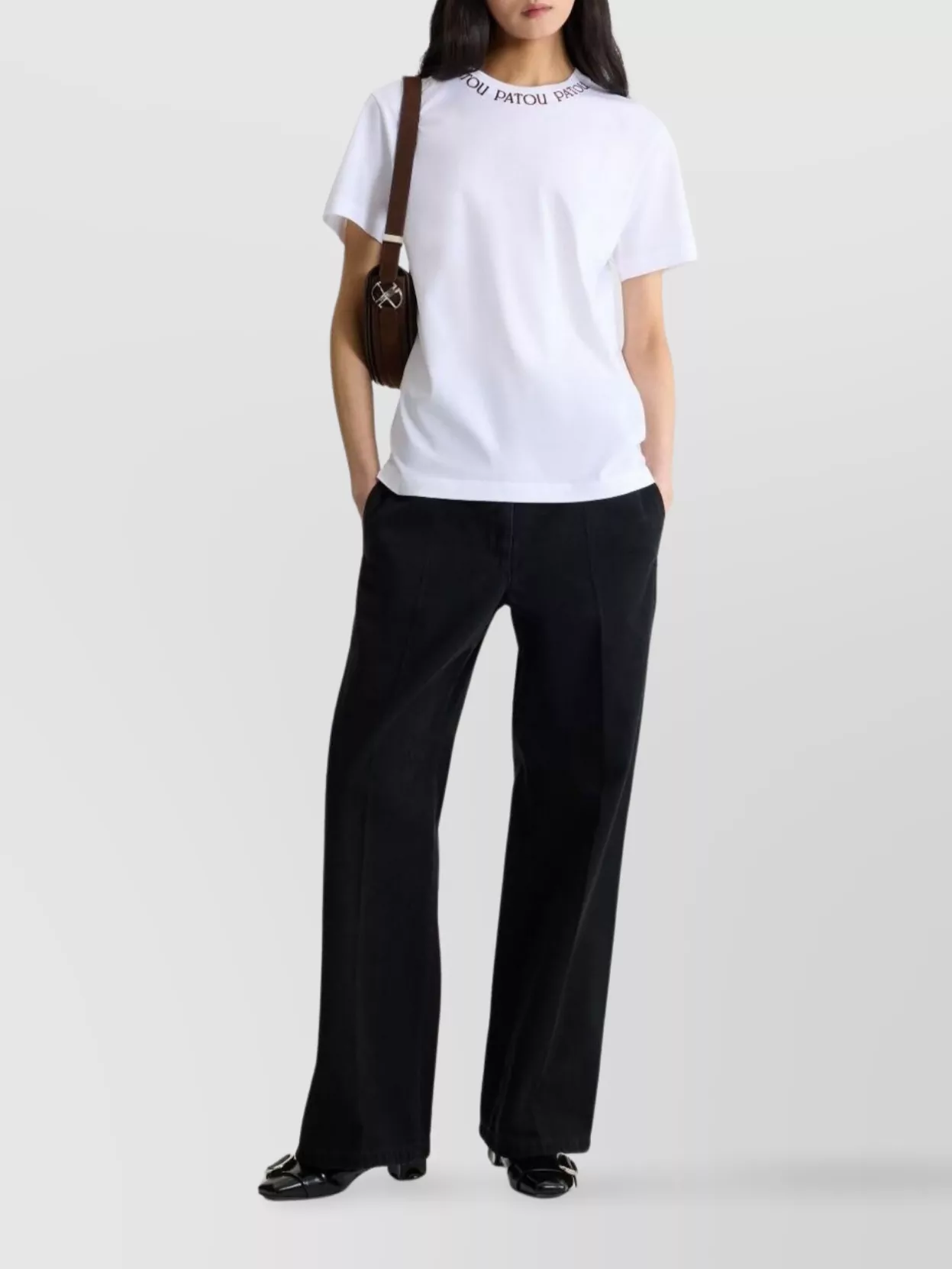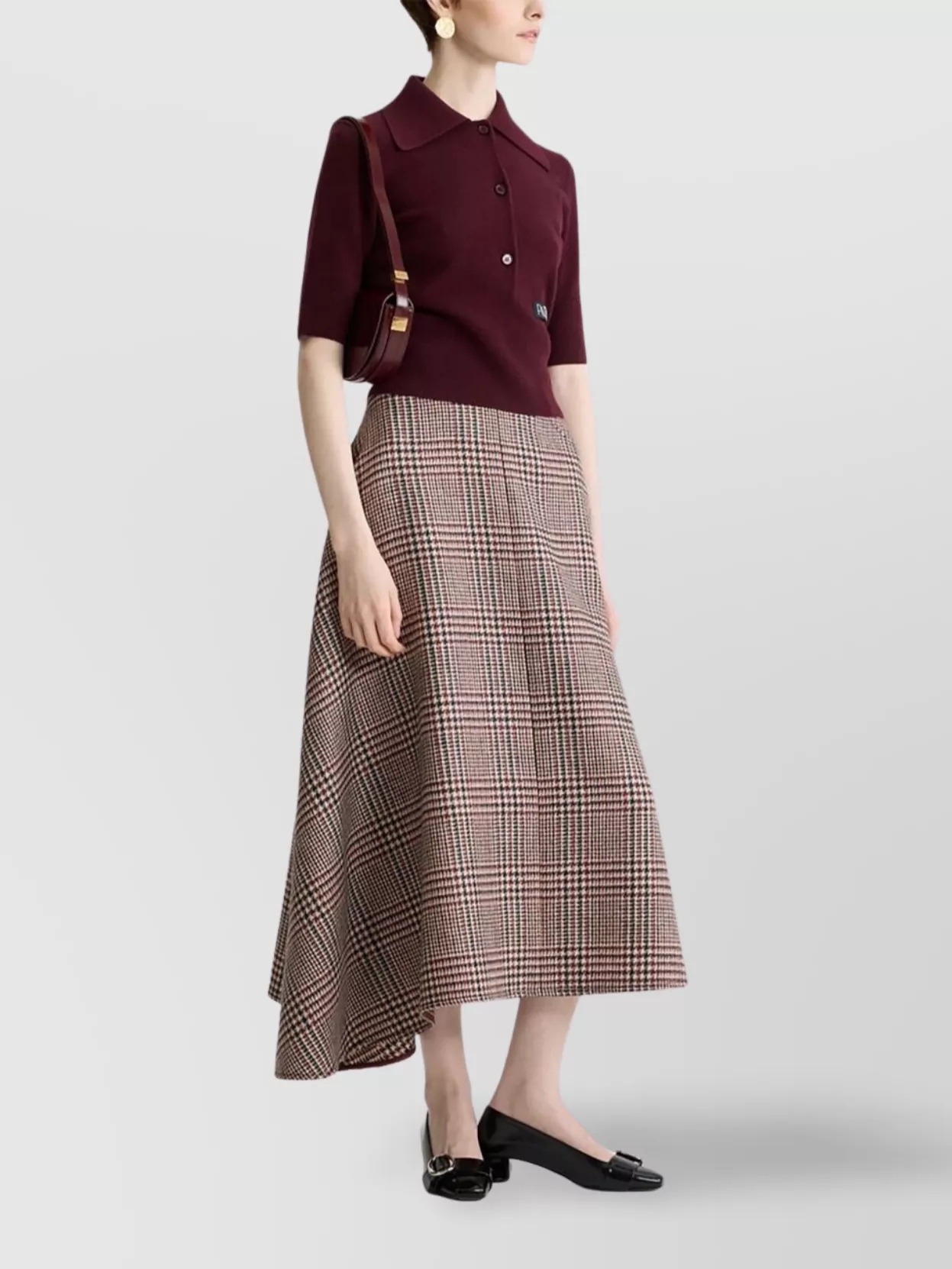 curved leather shoulder bag with gold hardware