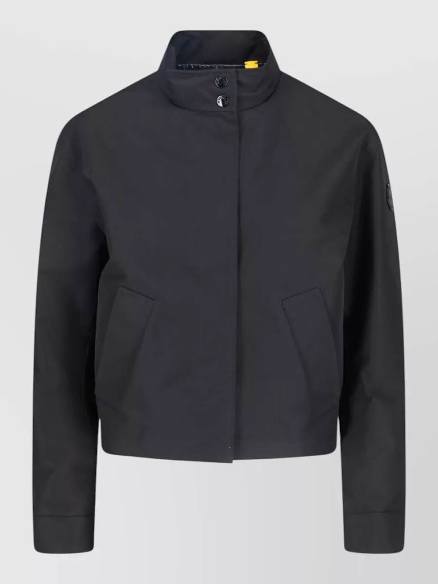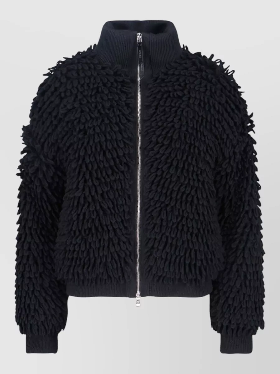 high collar jacket ribbed cuffs hem