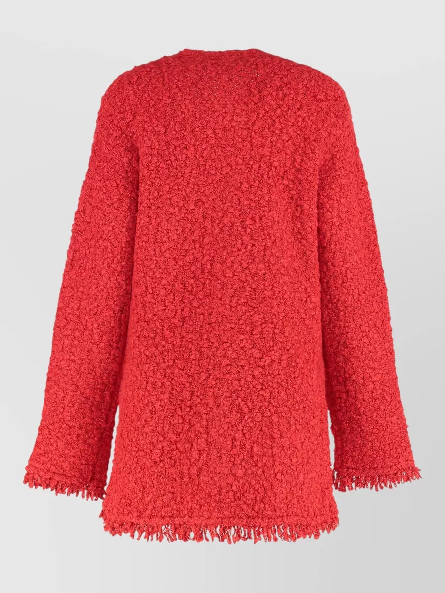 boucle knit jacket fringe pockets texture
