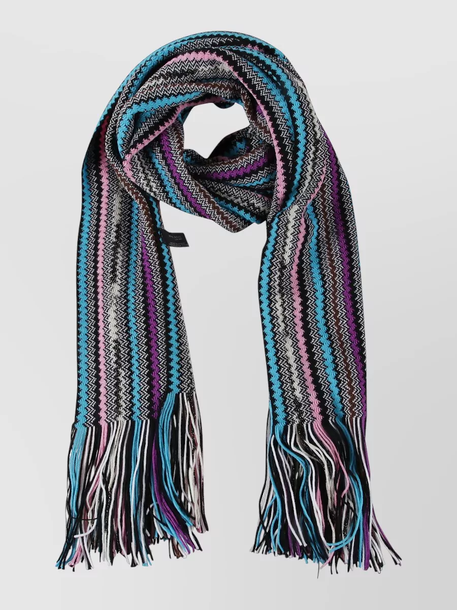 Missoni striped knit scarf featuring fringed ends