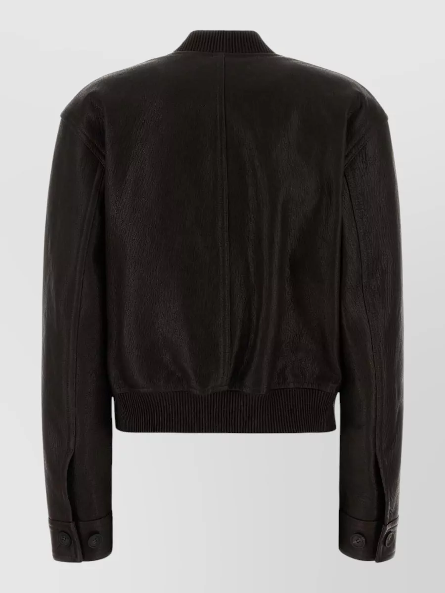 Ferragamo leather bomber jacket with ribbed cuffs and pockets