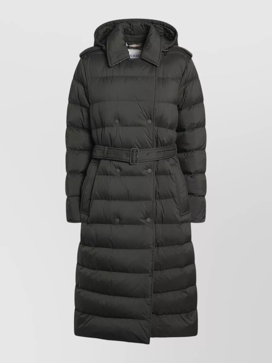 Burberry double breasted padded coat belted hood