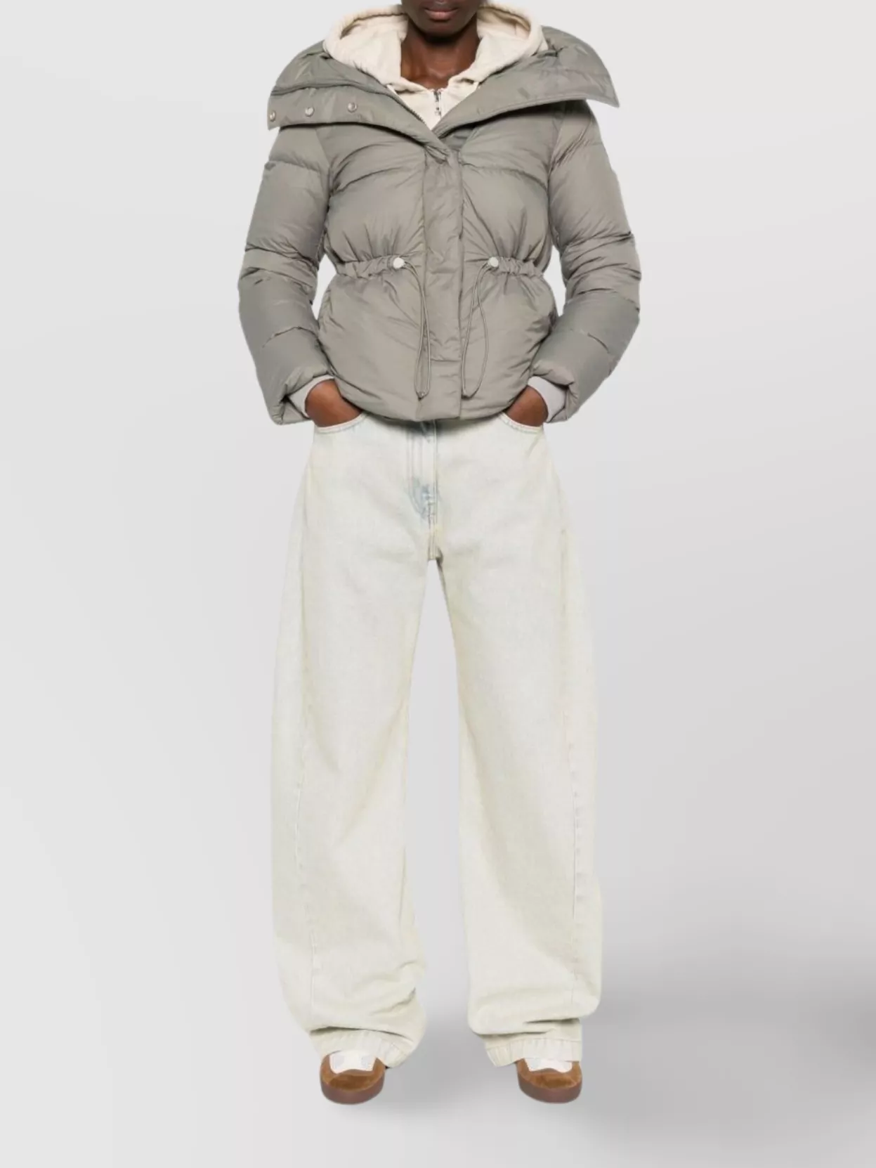hooded padded jacket drawstring waist