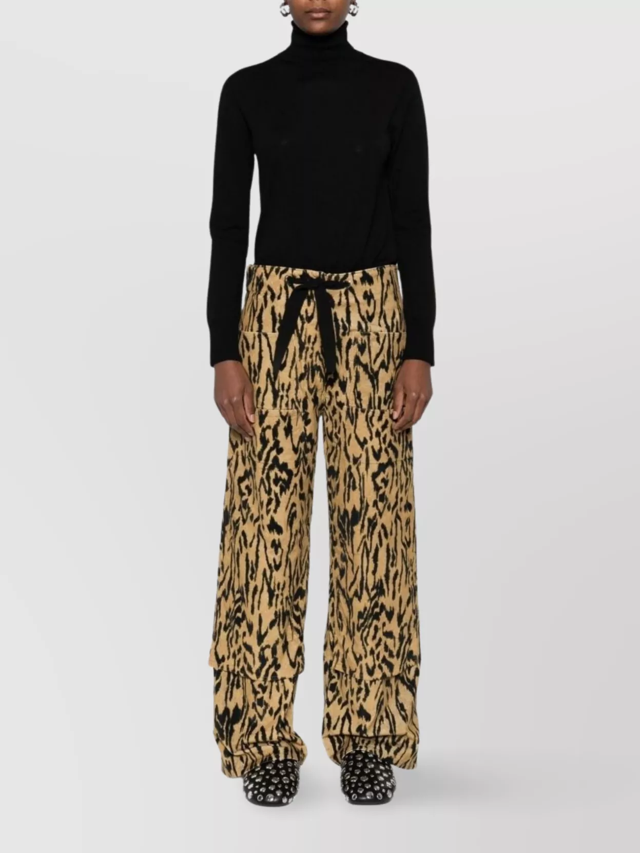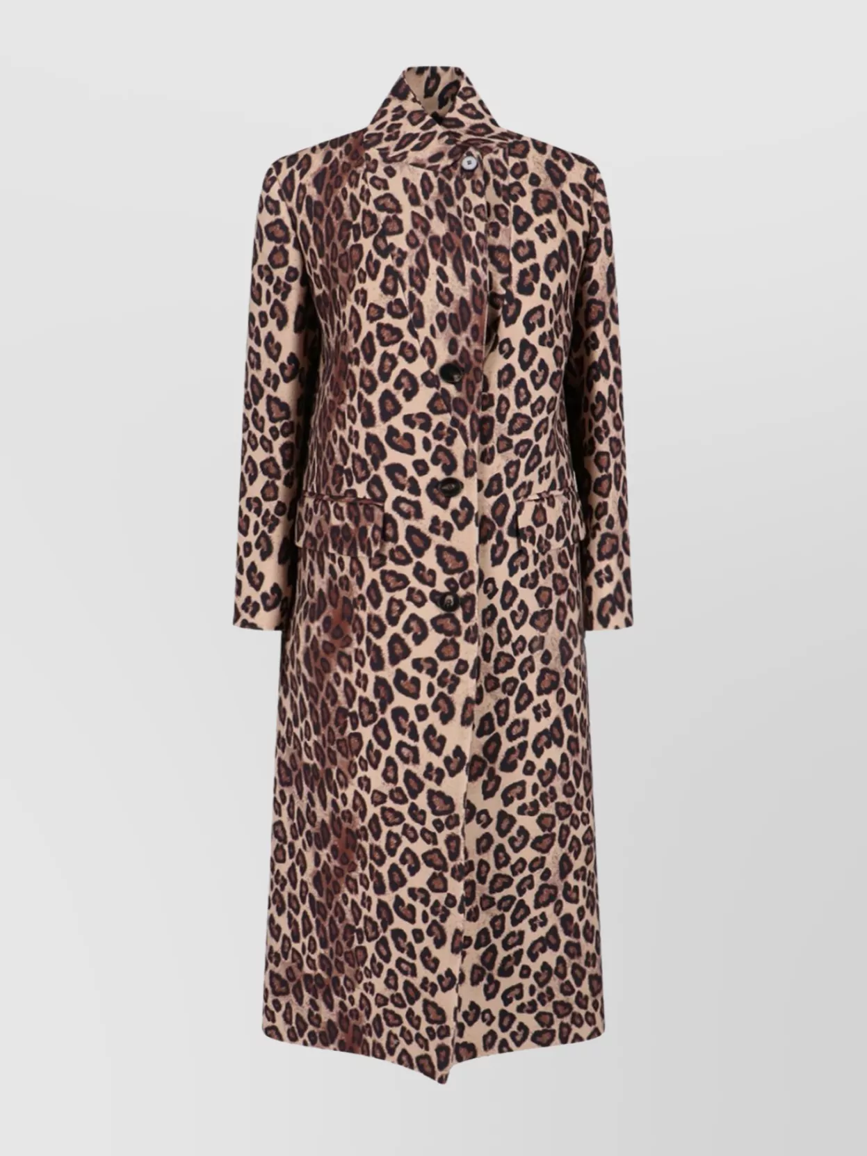long leopard print jacket with notched lapel
