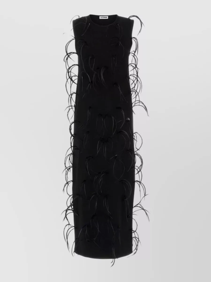 Jil Sander sleeveless midi dress featuring feather embellishments