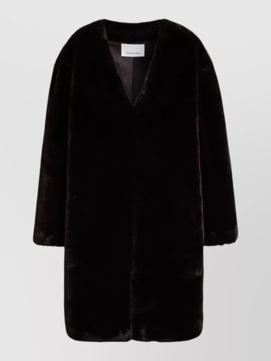 The Frankie Shop faux fur coat long sleeves v neck