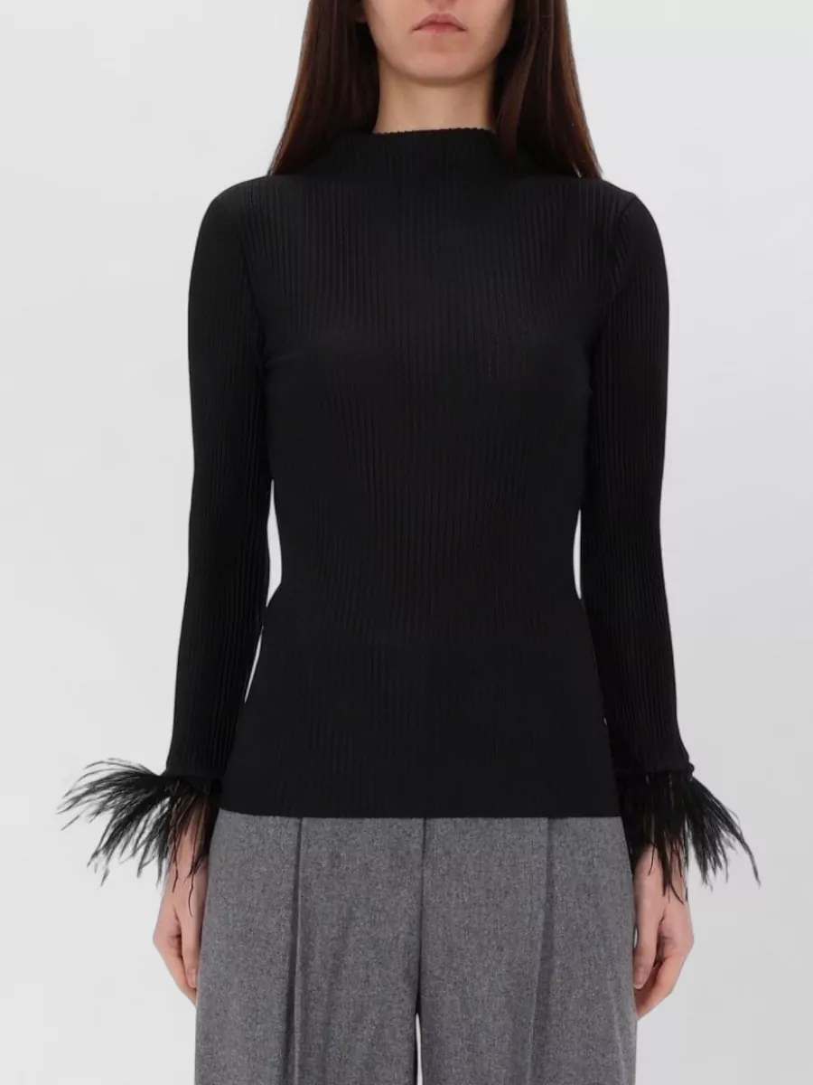 Valentino Garavani long sleeve cashmere dress with embroidery and feathers
