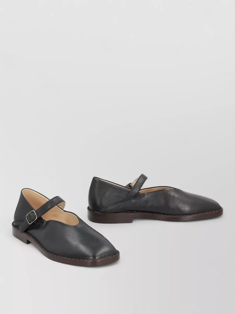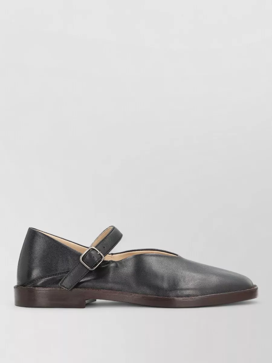 glossy open toe leather mules with sculpted heel