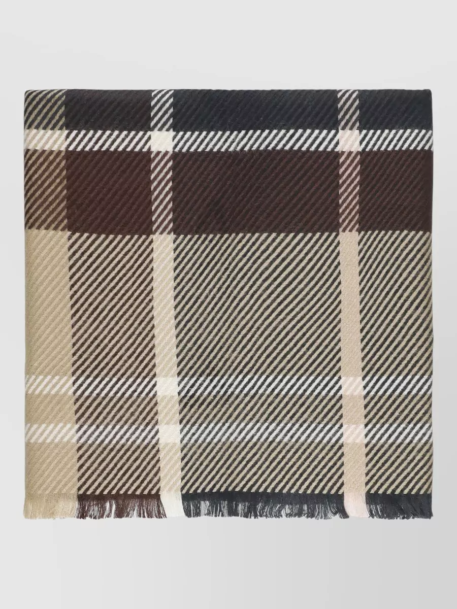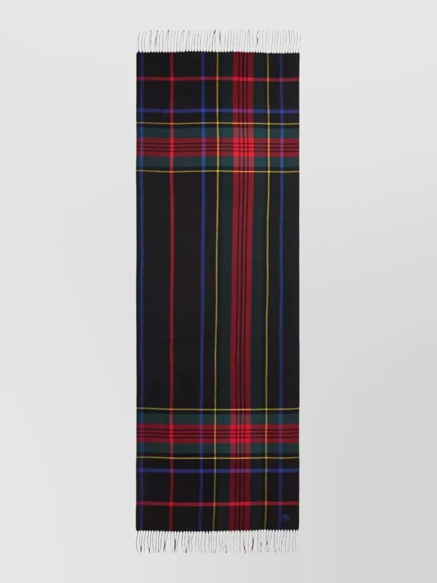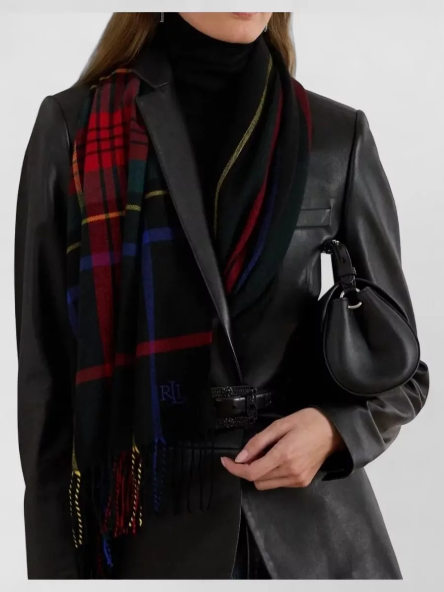 tartan pattern scarf contrasting design fringed hem