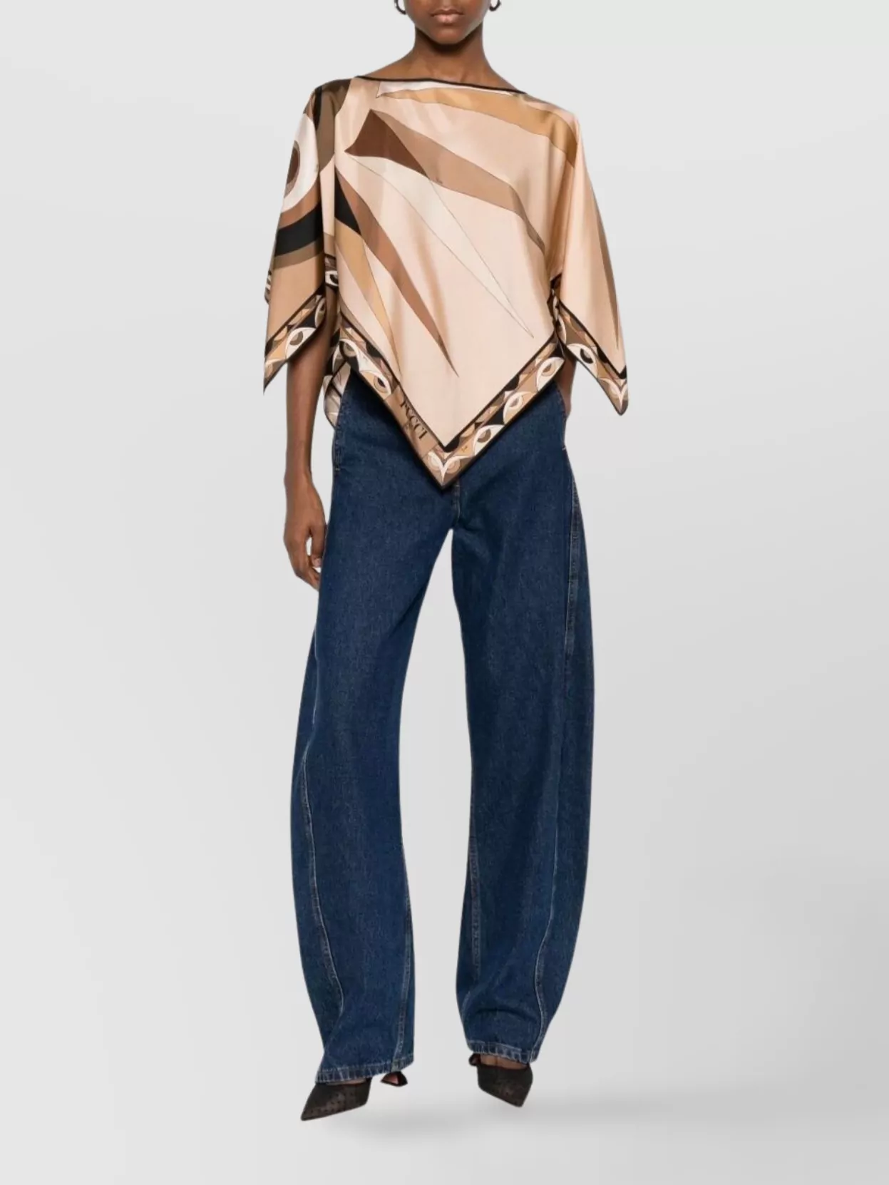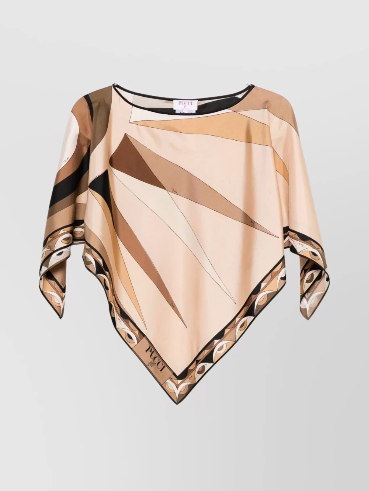Pucci geometric print silk top with boat neck