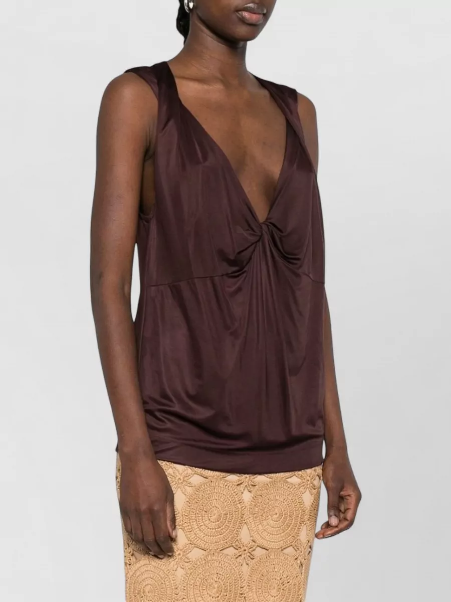 sleeveless top deep v neck draped knot