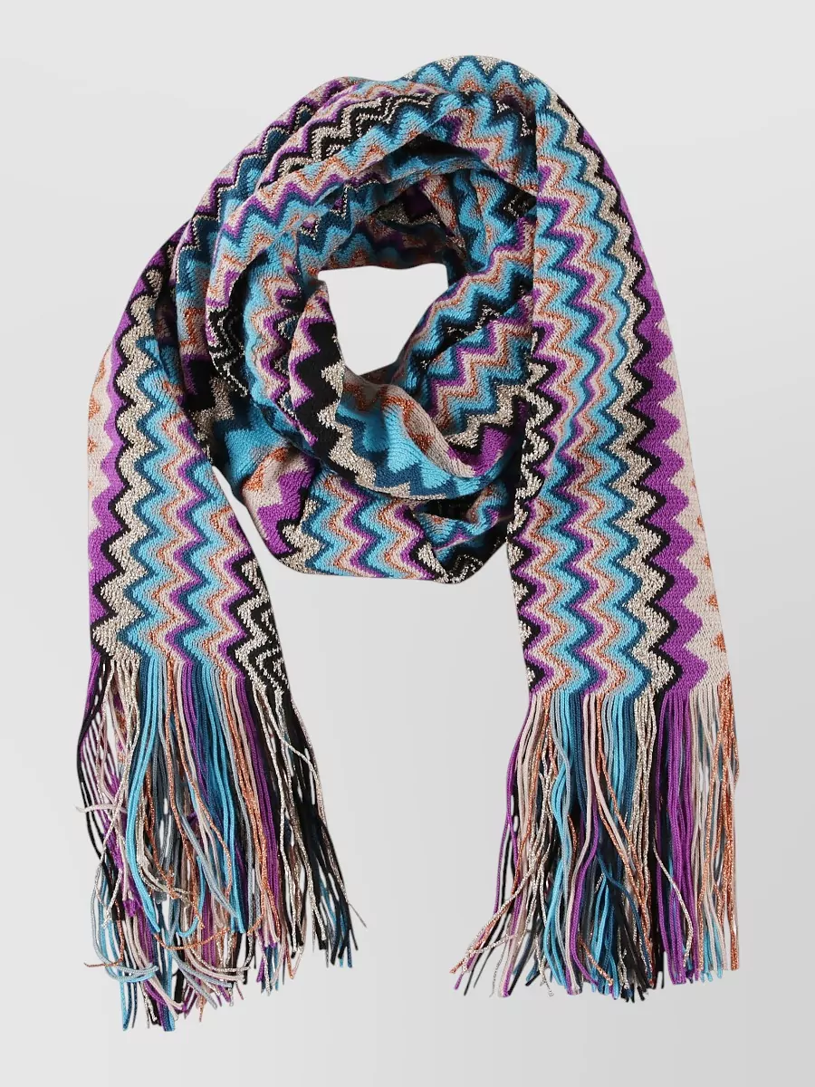 Missoni zigzag design scarf fringed edges