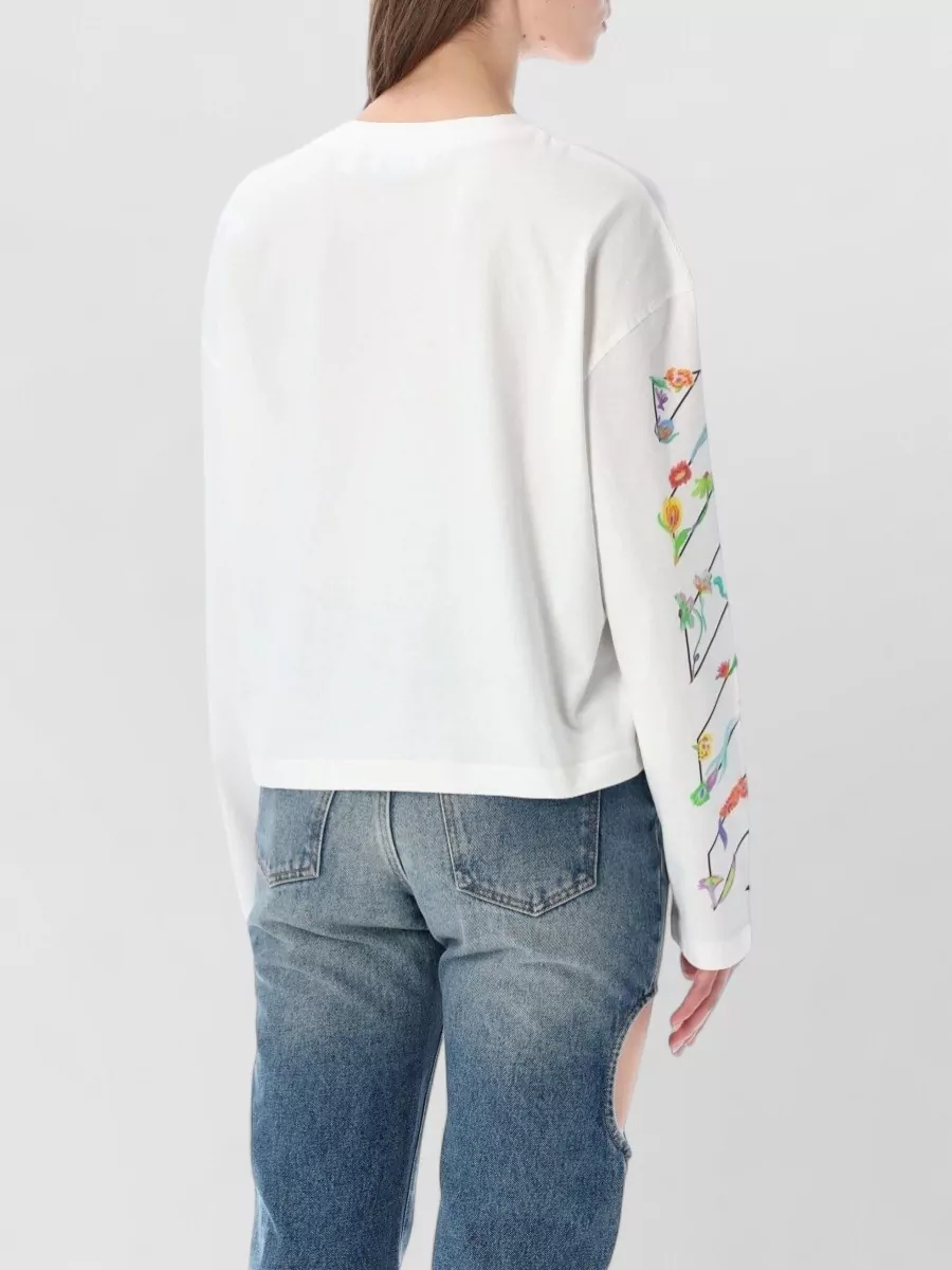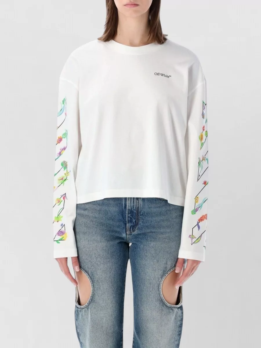 Off-White crew neck sweatshirt with long sleeves and ribbed cuffs