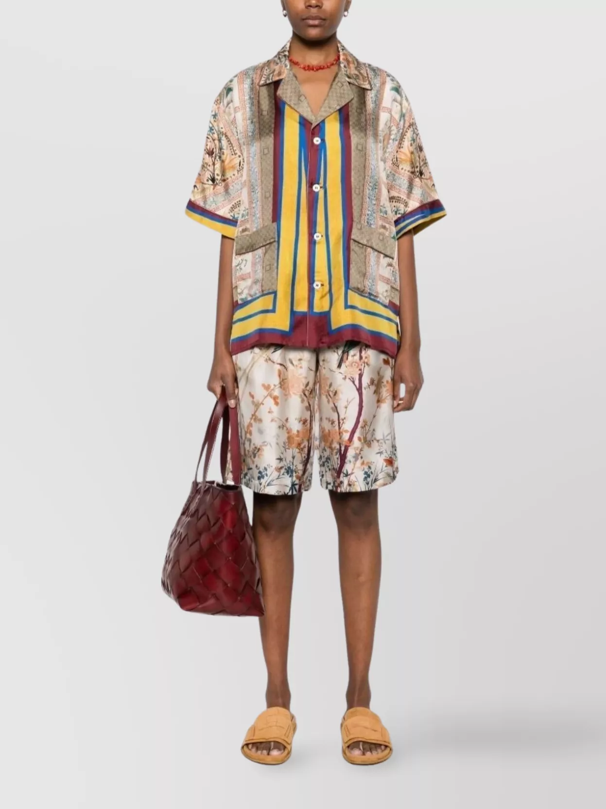 bold print silk bermuda shorts