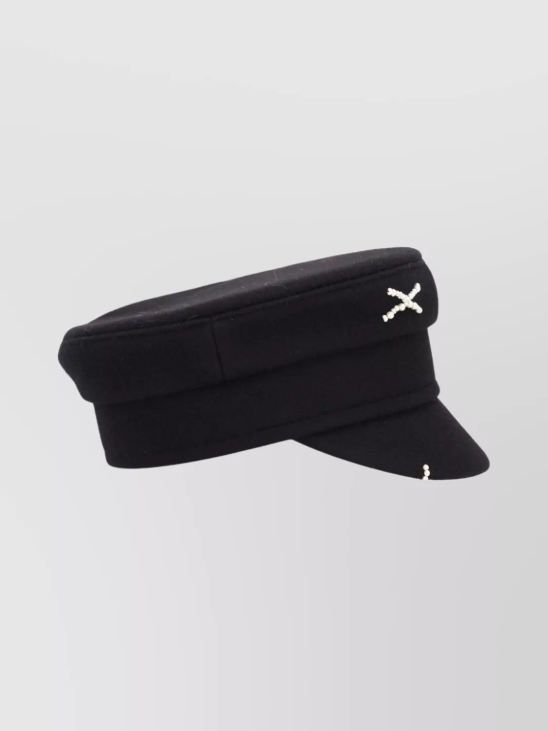 Ruslan Baginskiy satin baker boy hat with rhinestone embellishments
