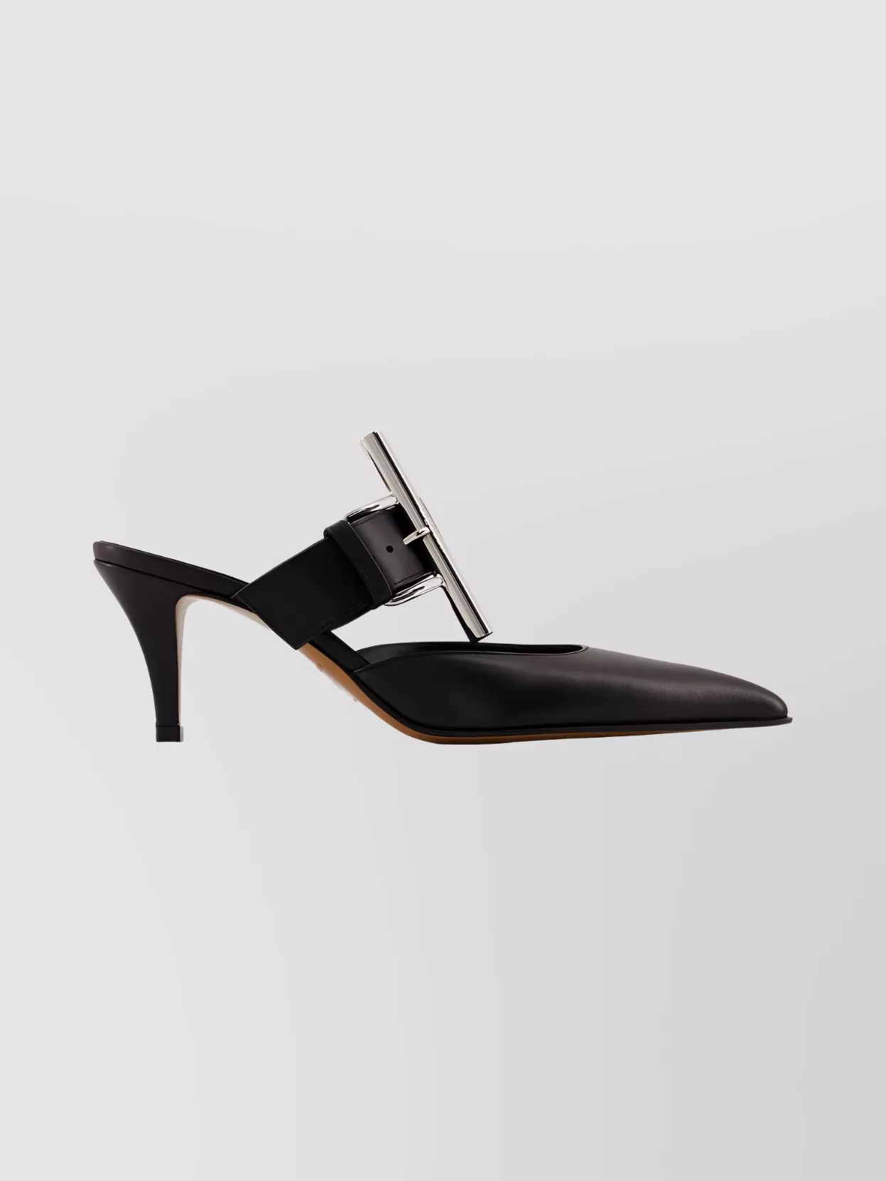 leather mules with kitten heel and metal embellishment