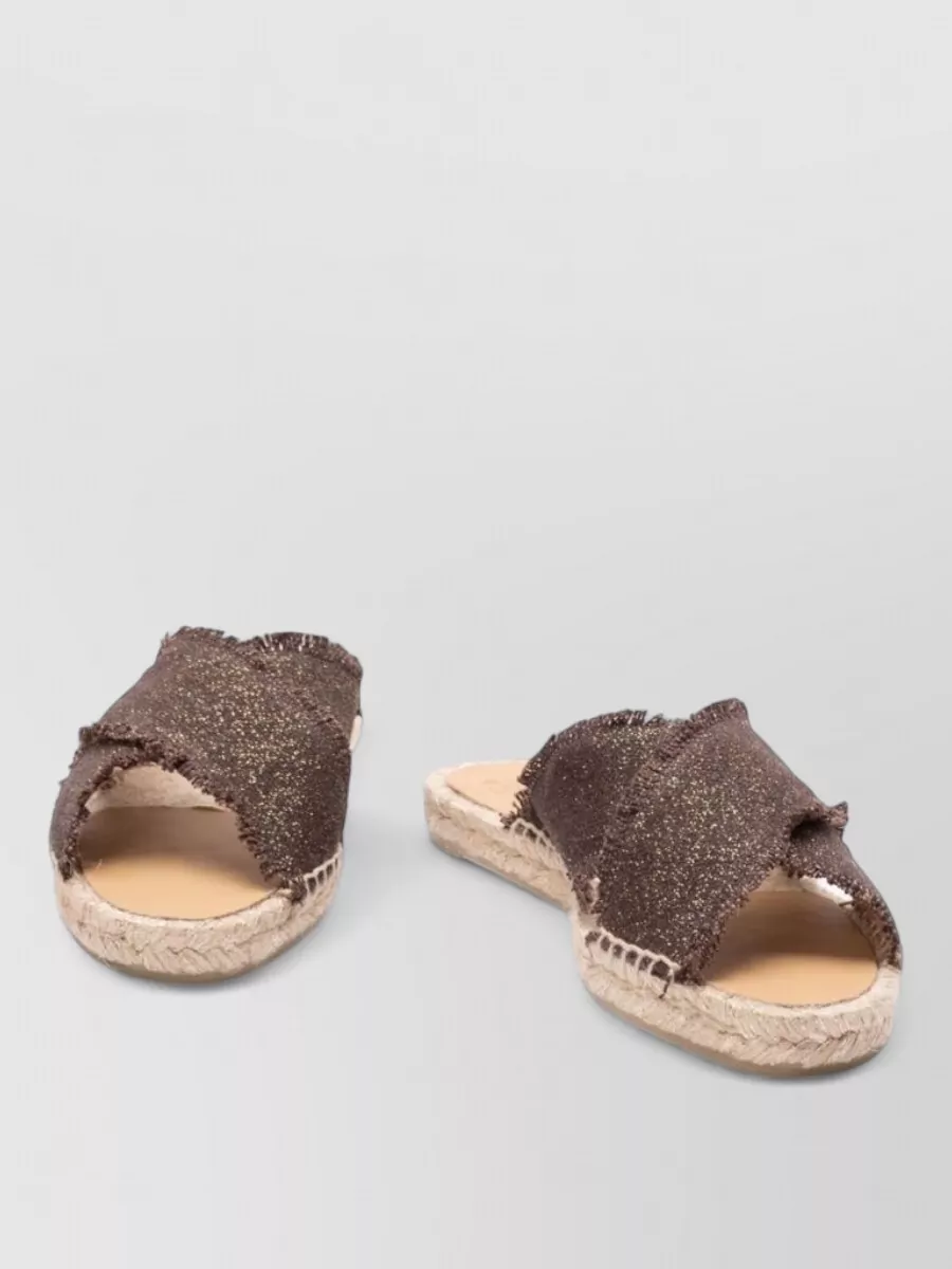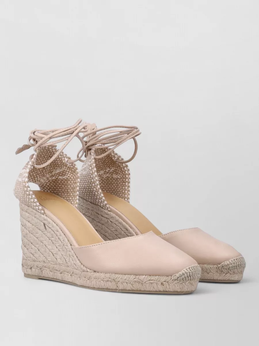 Castaner "clear" ankle wrap espadrille sole peep toe woven texture