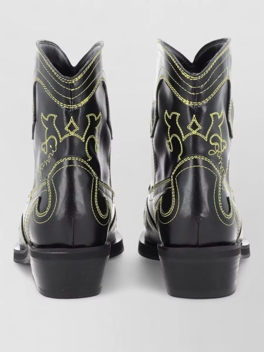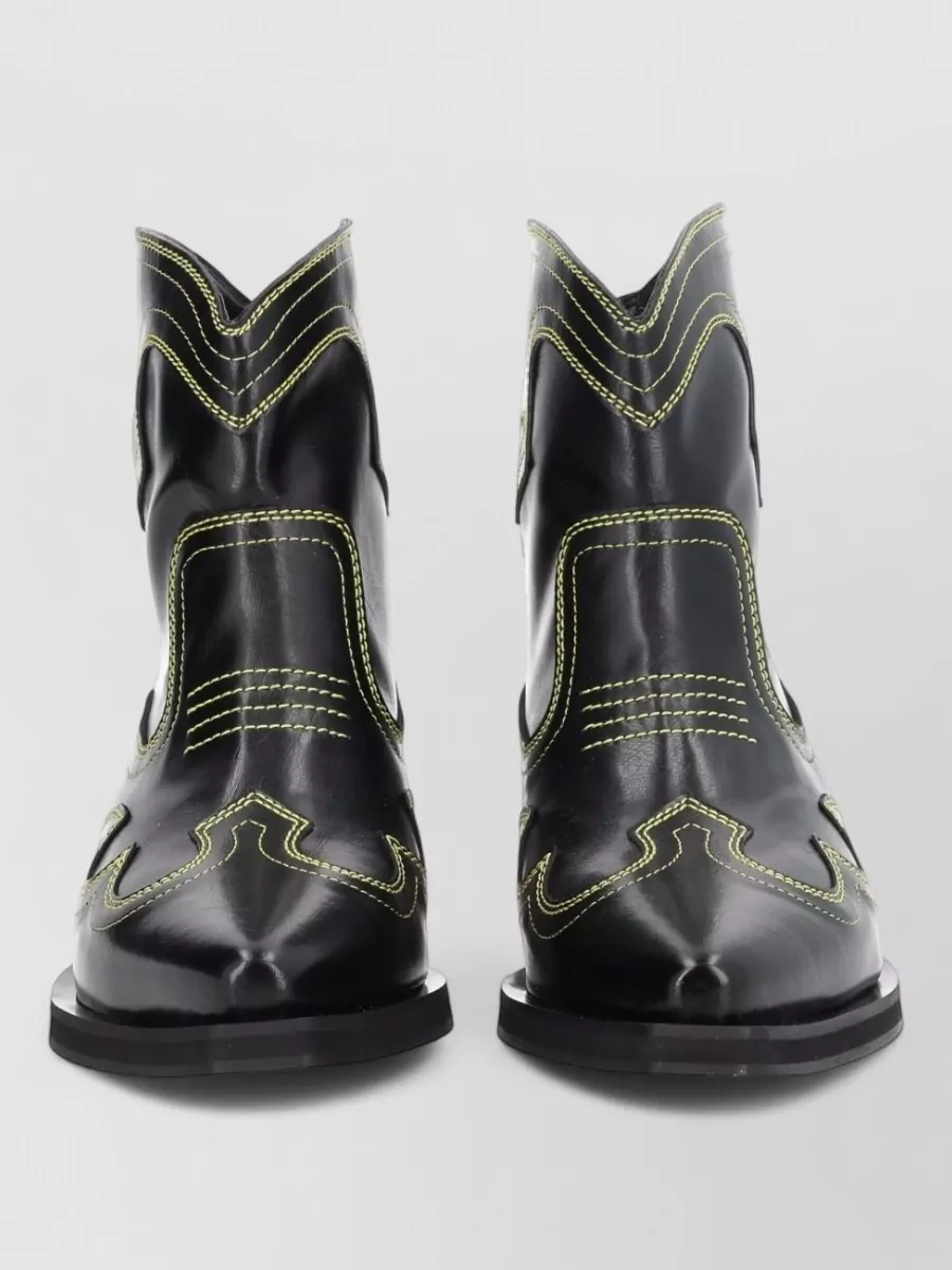 Ganni stitched western style pointed toe boots