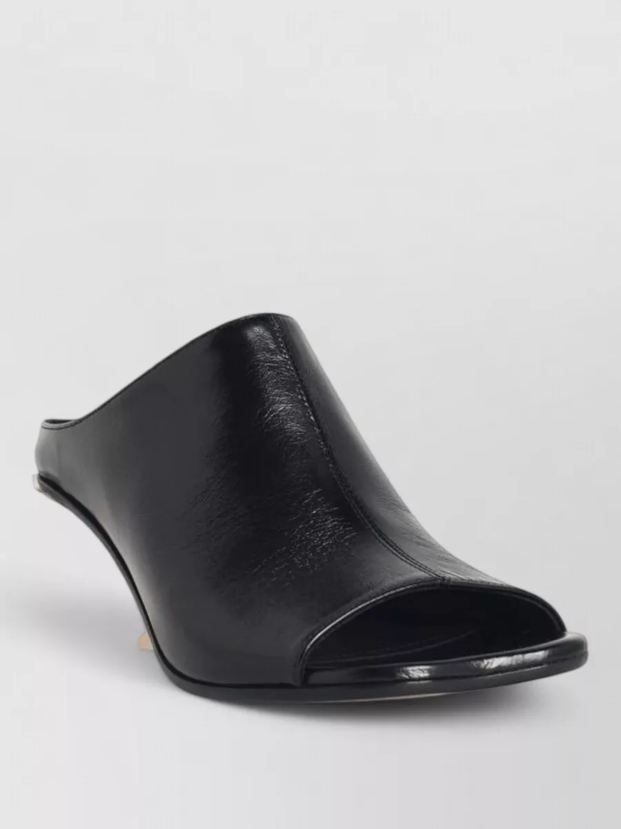 block heel leather sole open toe mules