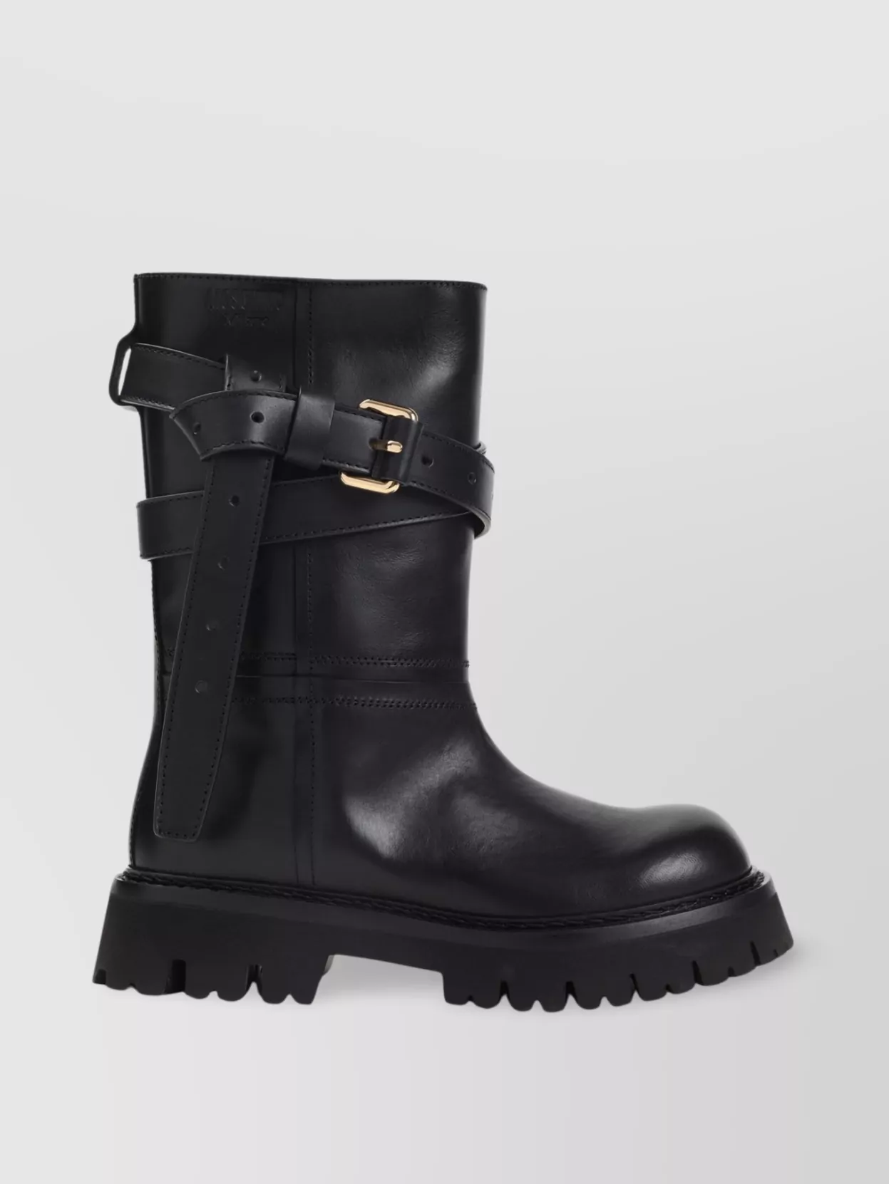 boots chunky sole round toe cross straps
