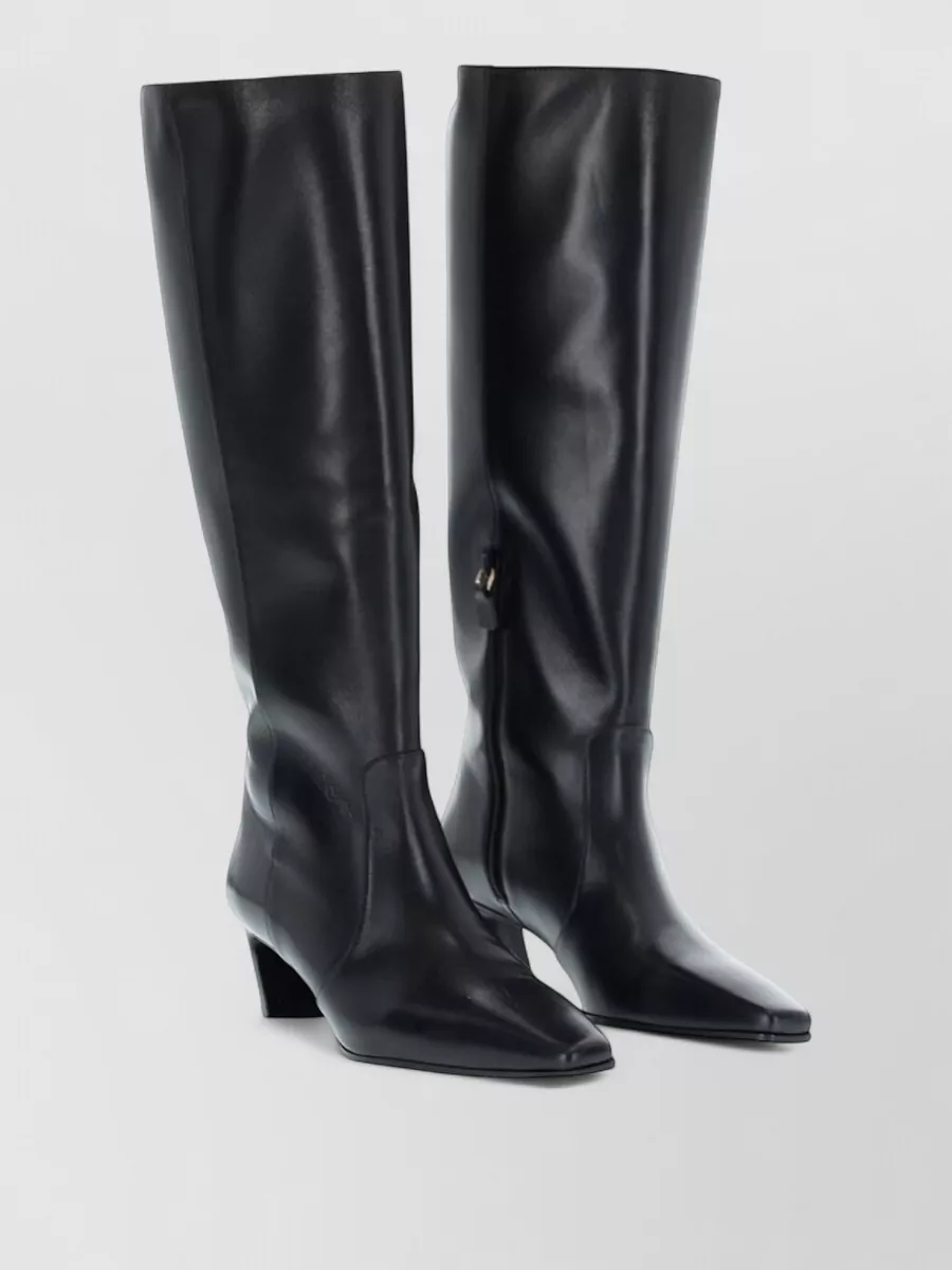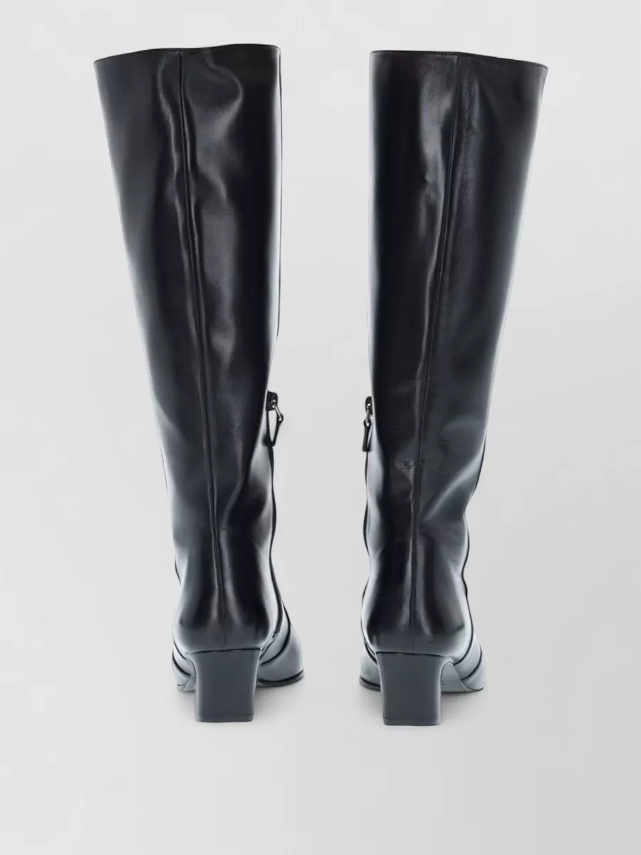 knee length block heel pointed toe boots