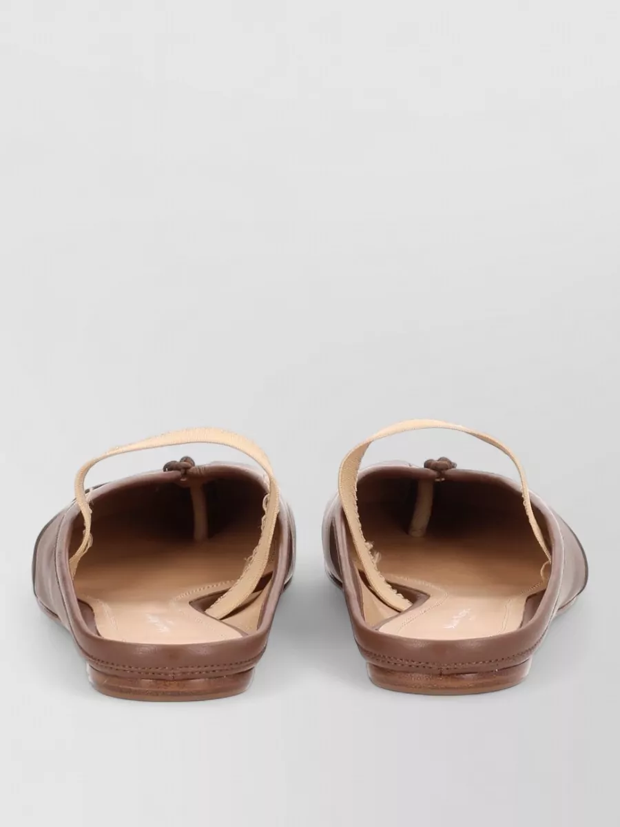 split toe flat sole leather mules