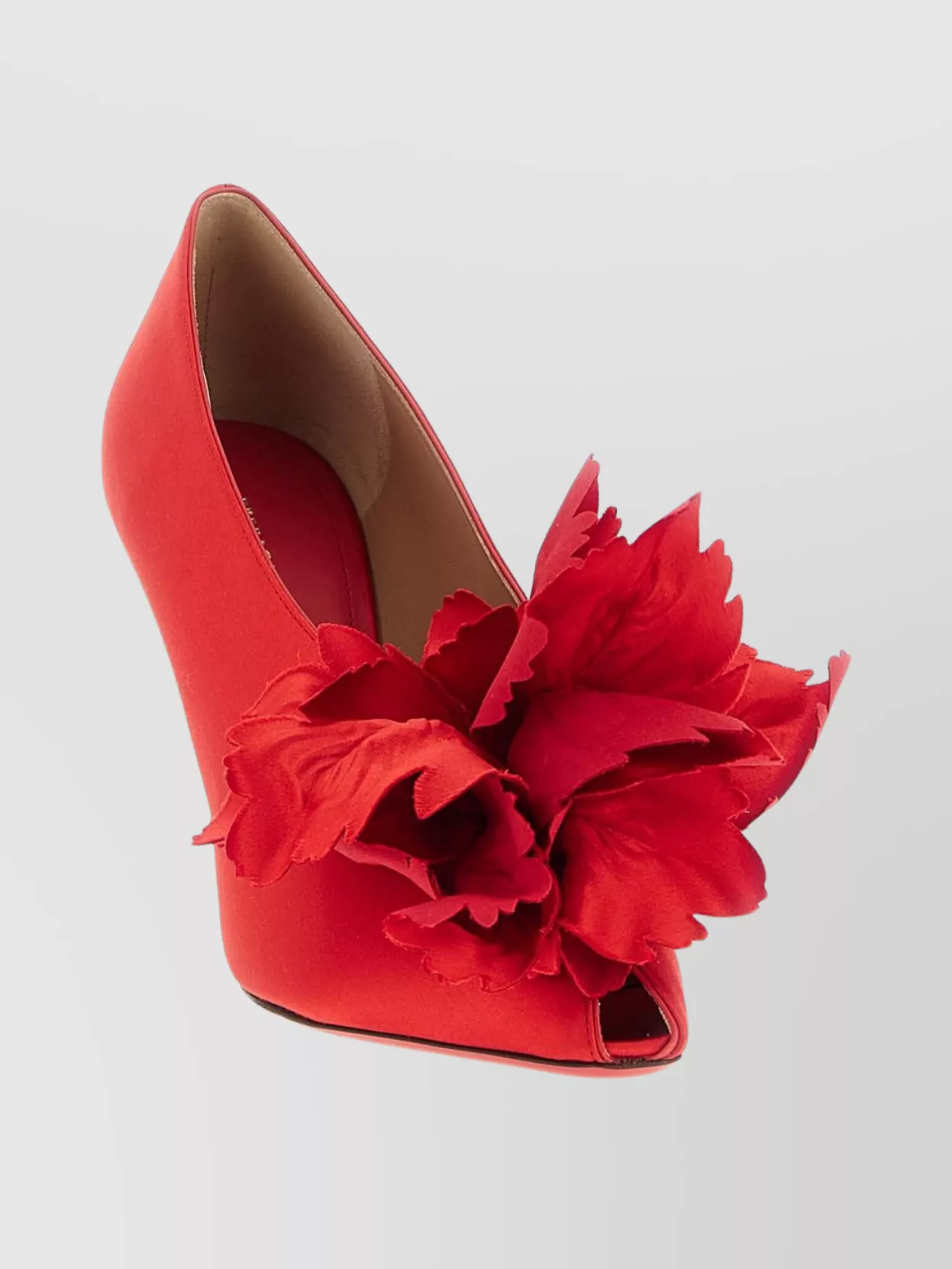 floral peep toe satin stiletto pumps