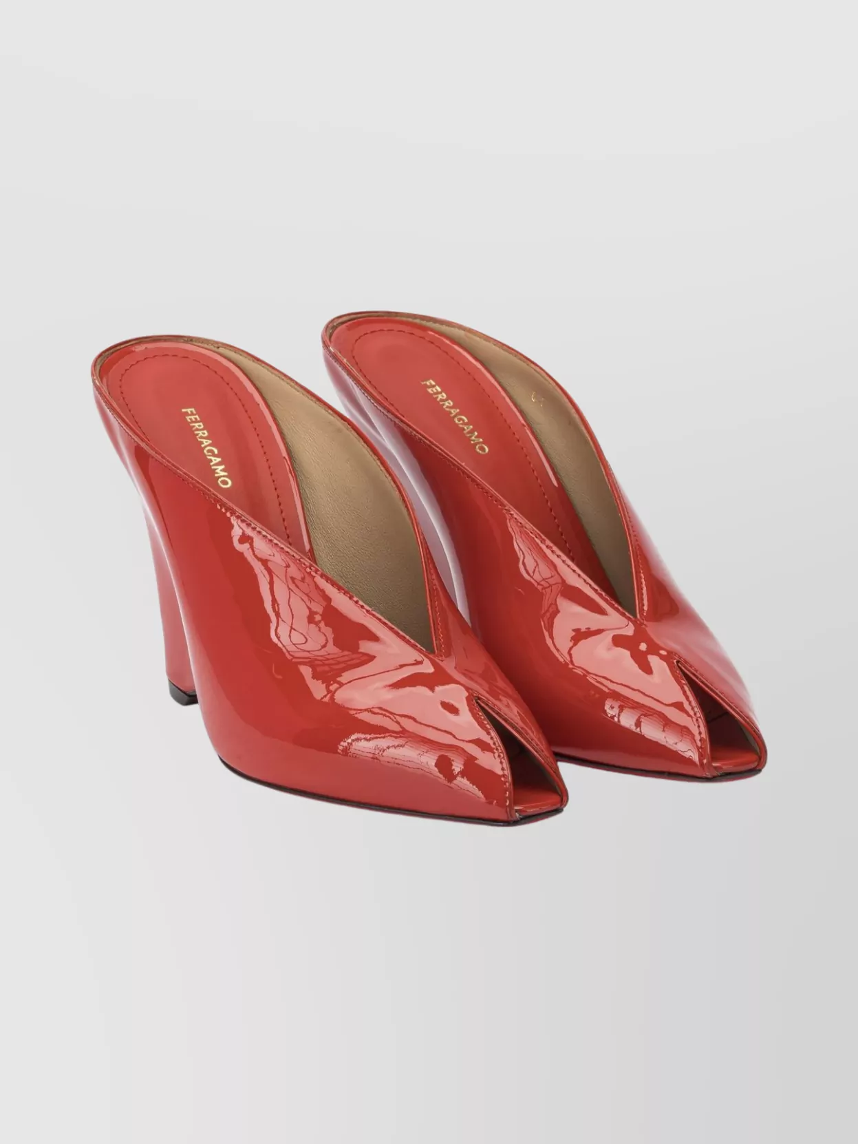 Ferragamo leather mules with wedge heel and glossy finish
