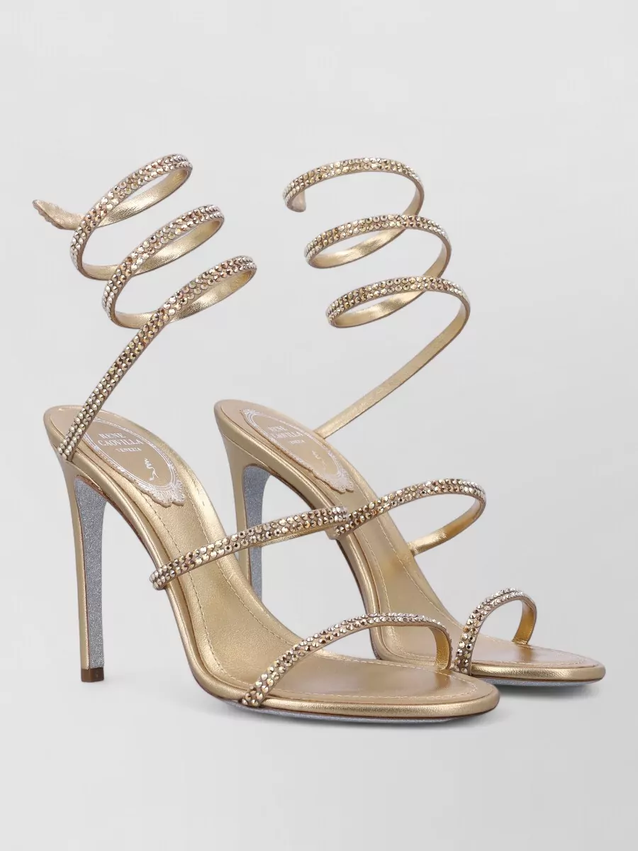 Rene Caovilla leather metallic spiral strap sandals