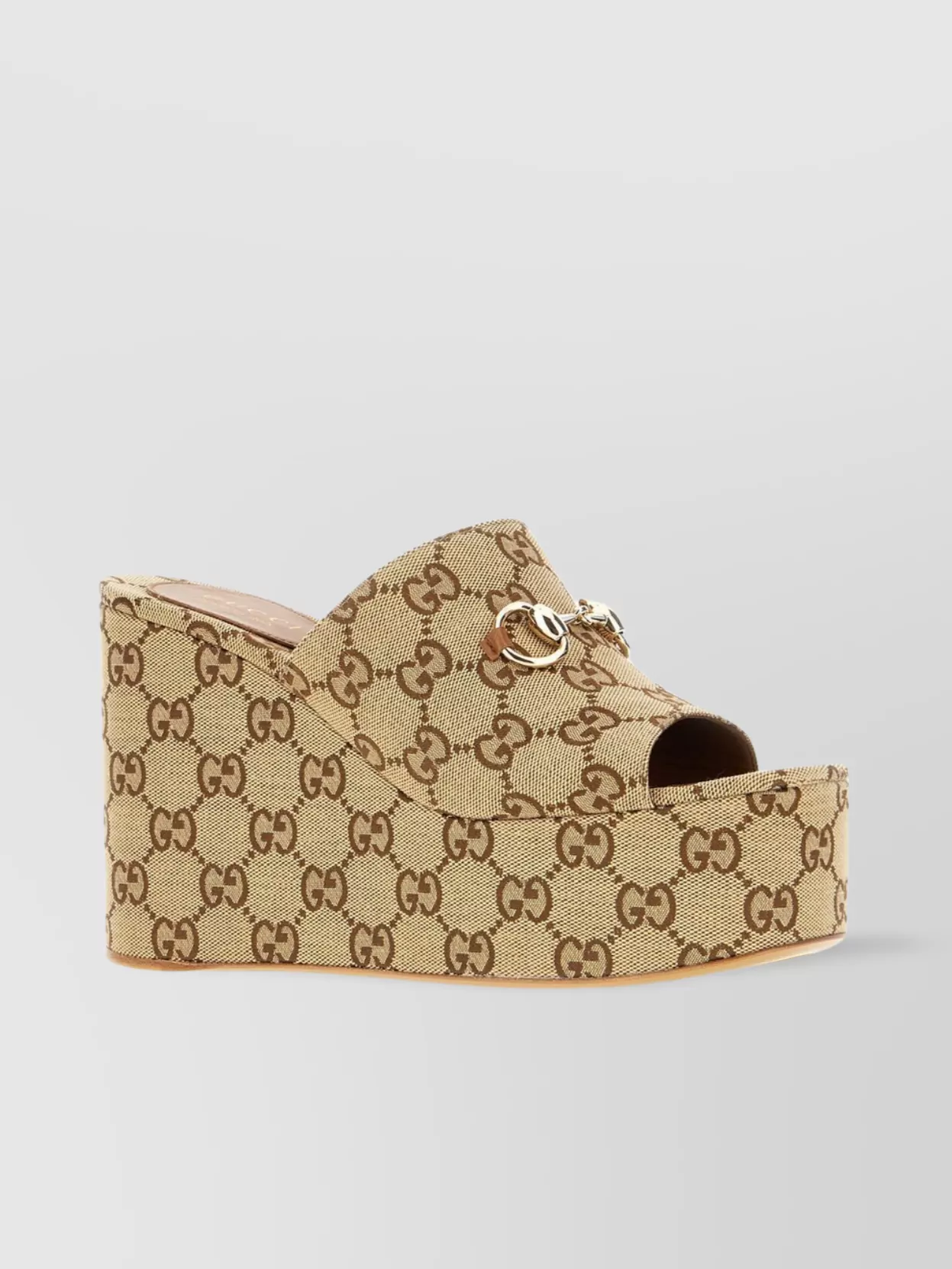 Saint Laurent lucienne open toe wedge sandal with gold heel