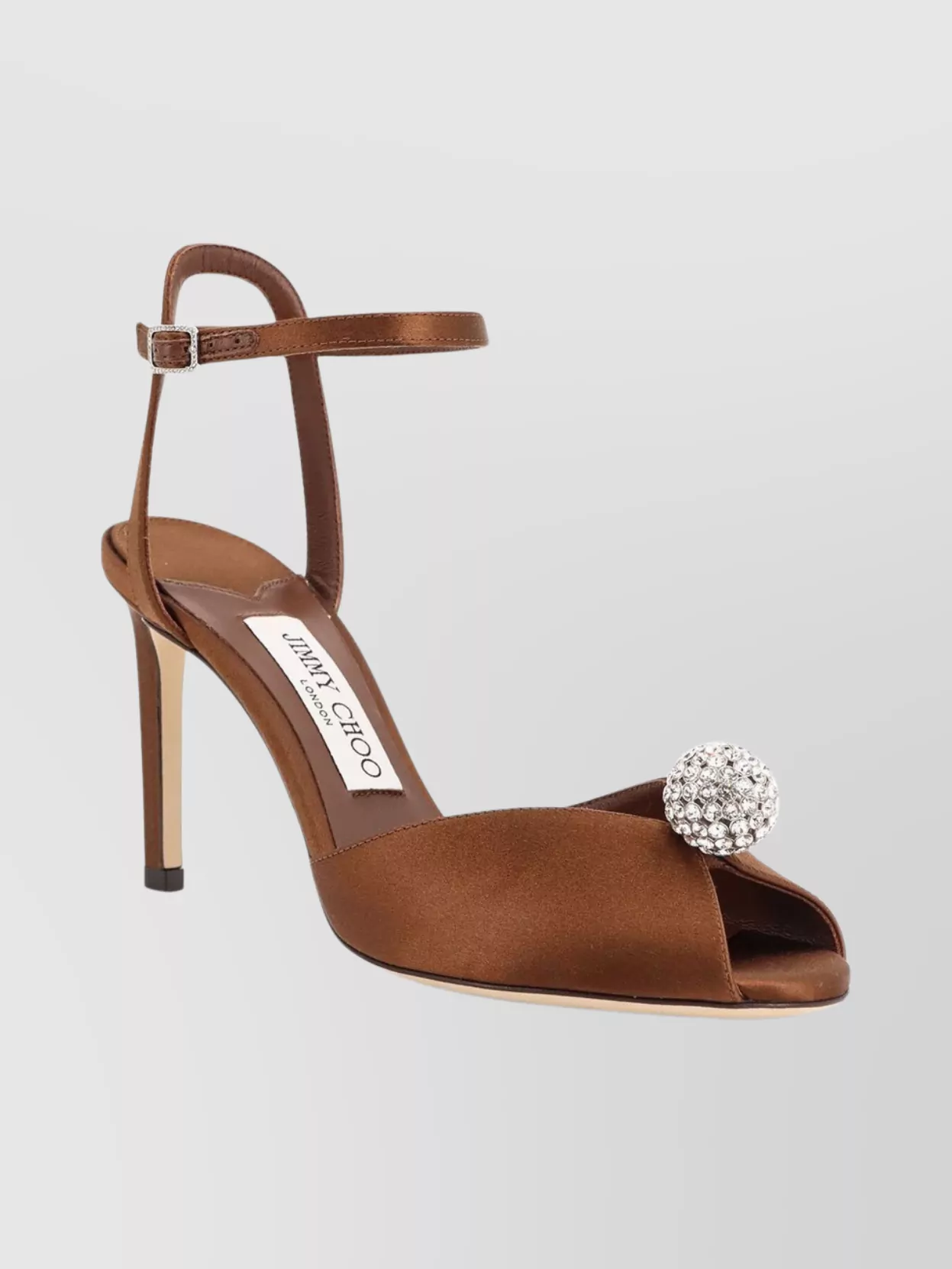 Jimmy Choo satin sandals with pearl embellishment and strappy design